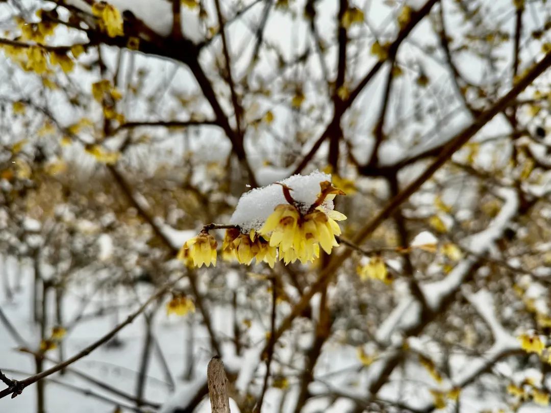 迎着满天飞舞的雪花,蜡梅傲然绽放,朵朵清香,沁人心脾。