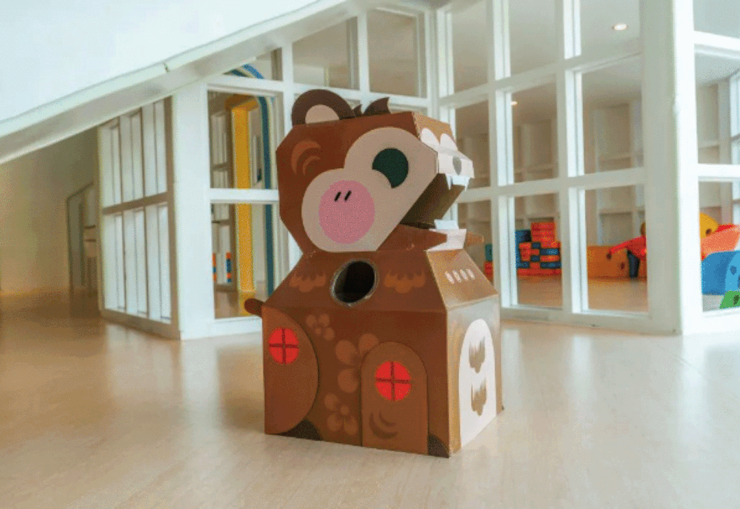 小朋友们来到皮影兔手作体验馆,看着纸板拼搭而成的动物玩偶、龙号机车等,都觉得十分奇妙,眨巴着星星眼想把它们带回家,亲手制作。