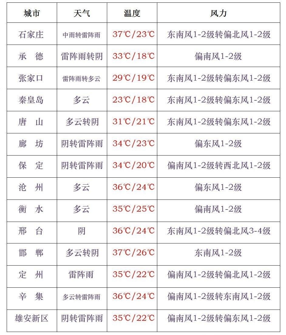 【雷雨来袭】今天白天,张家口、承德北部、保定中西部、廊坊北部、石家庄西部多云间阴有雷阵雨或阵雨,局地有中到大雨,雷雨时局地伴有短时强降水、短时大风等强对流天气,个别地点有冰雹,其他地区晴转多云。