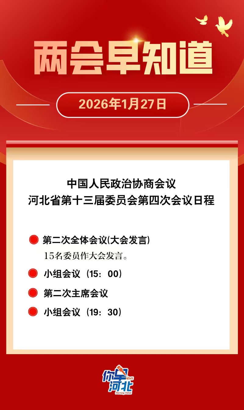 【两会早知道】河北省政协十三届四次会议1月27日日程↓