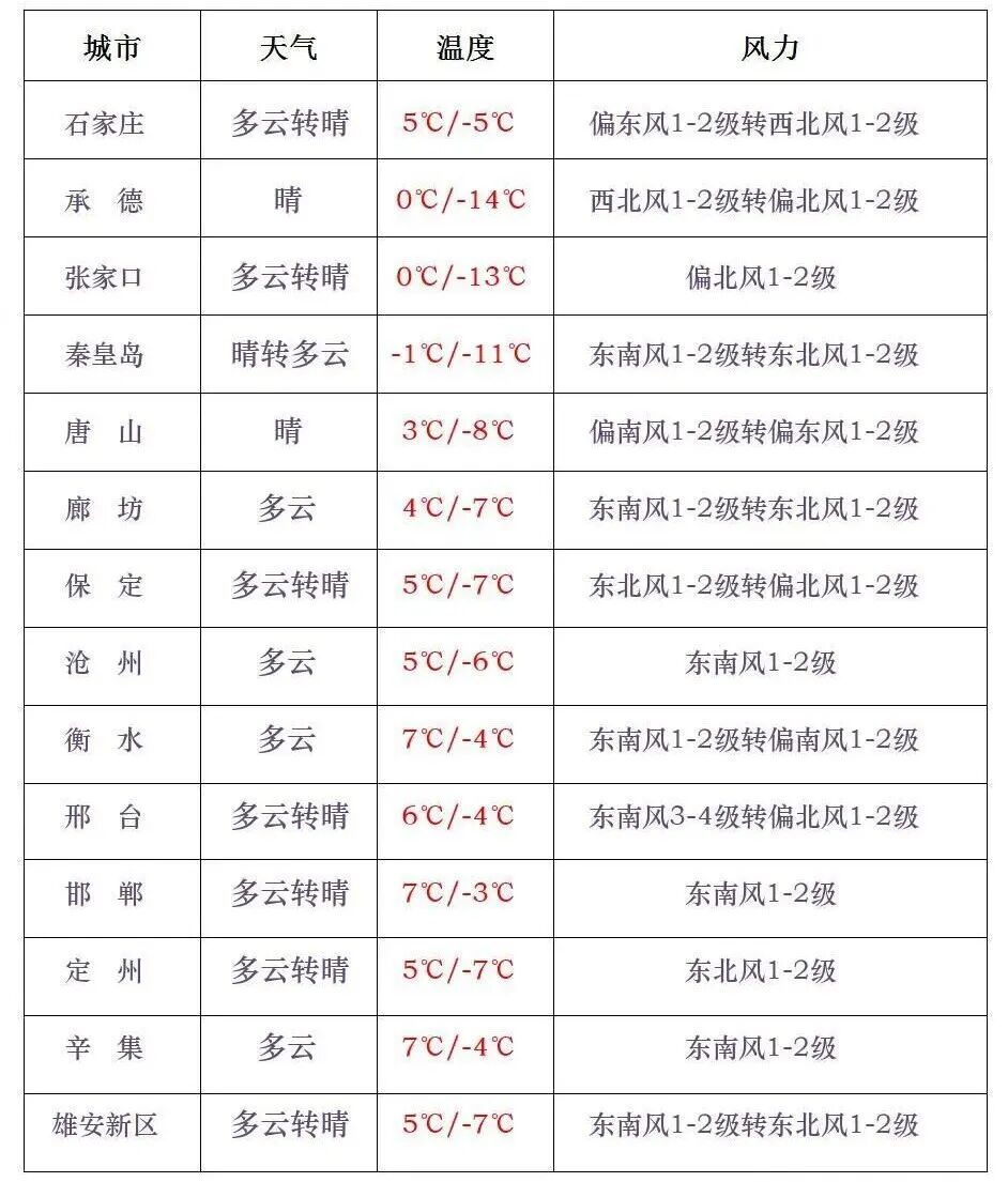 【河北局地有8级阵风】今天(1月27日),张家口和保定、廊坊以南地区多云间晴,其他地区晴间多云。今天傍晚到夜间,张家口北部、承德西部有西北风4到5级,阵风6到7级,局地可达8级。石家庄多云转晴,-5~5°C;雄安新区多云转晴,-7~5°C;北京多云,-5~2°C。