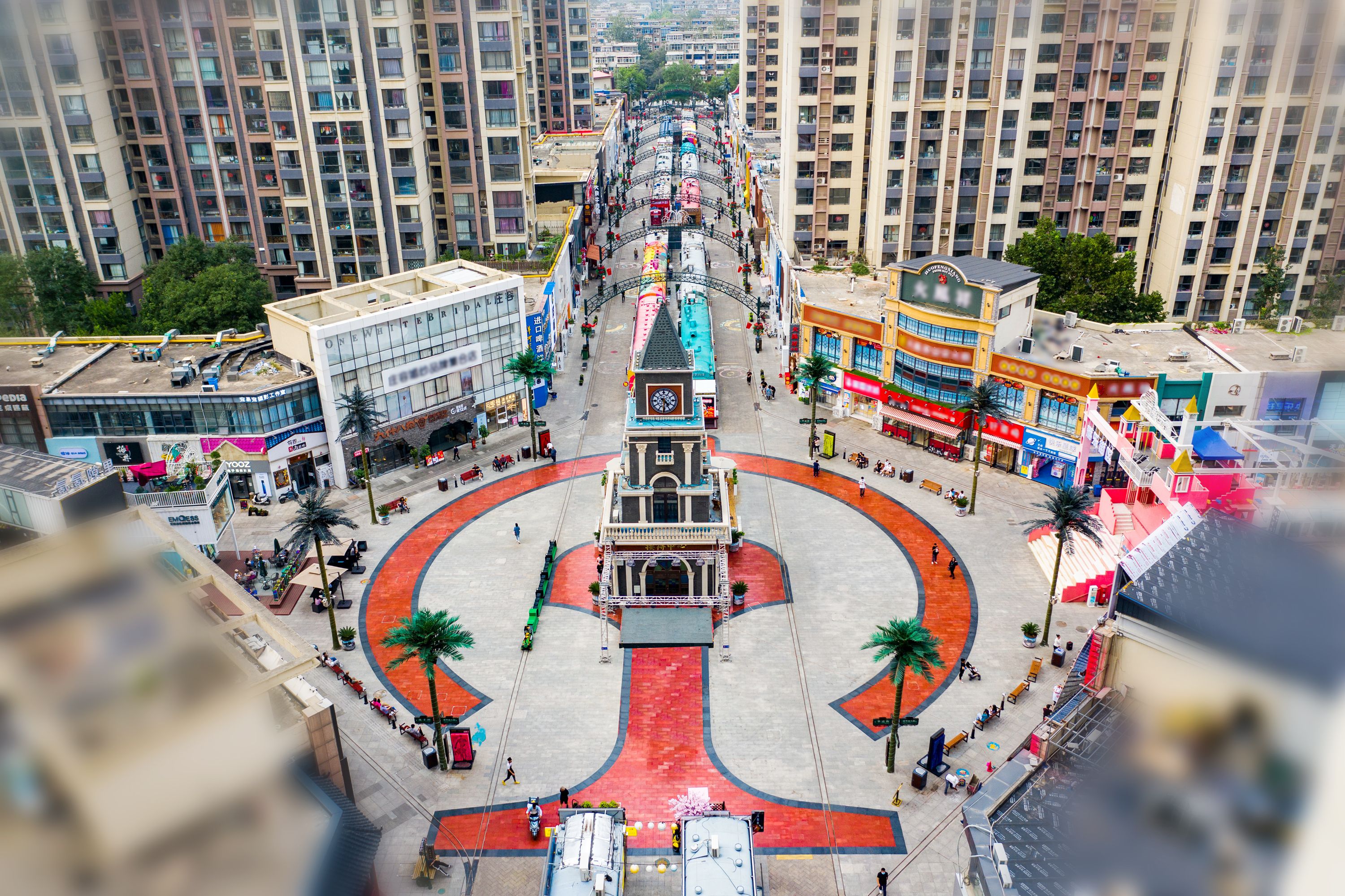 火车头步行街位于石家庄市裕华区,街区北至槐中路,南至槐安路,东至建华大街,西至华清街,总长度为1200米,街道宽度26米,整个区域商业建筑面积约5万平米;街区四至范围占地总面积为35万平方米。