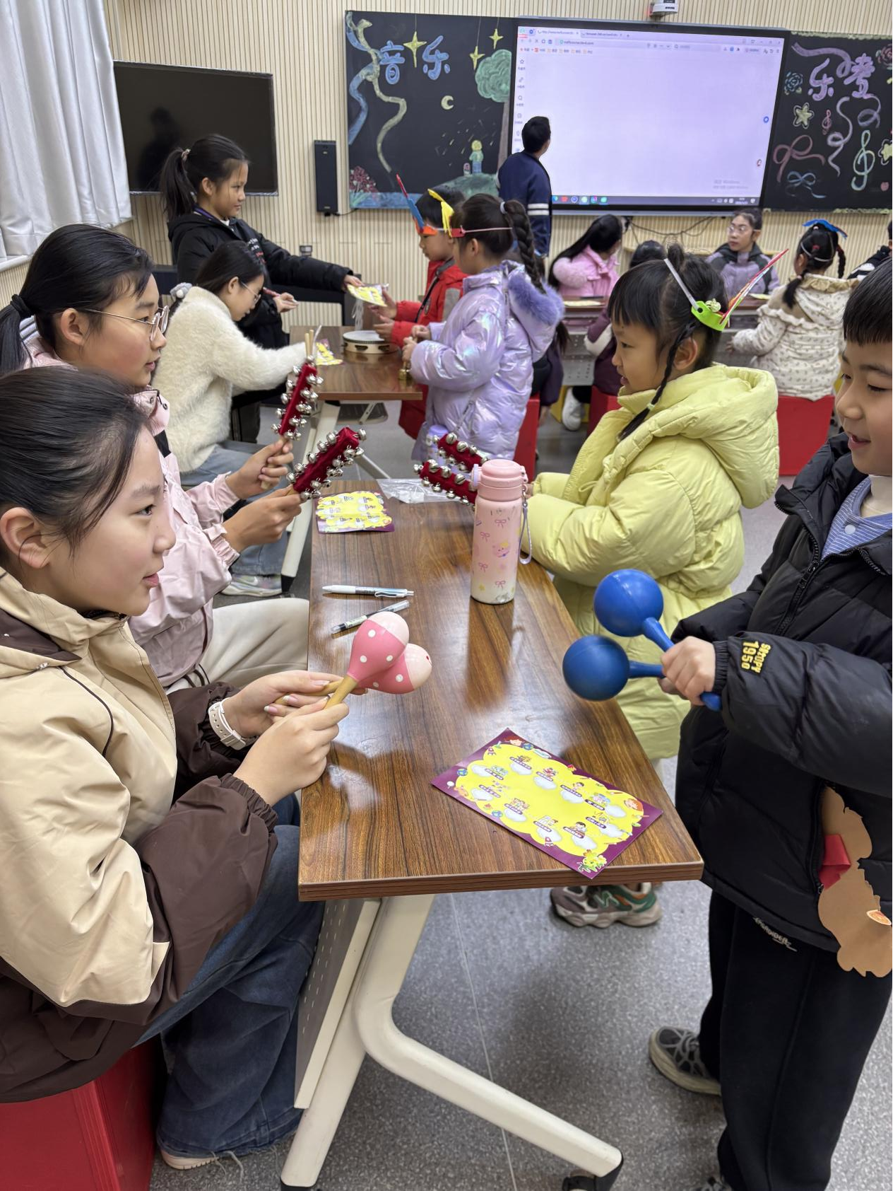 本次音乐闯关设有三大板块:“音名唱名小达人”识谱小赛场、“打击乐器模仿秀”乐器小舞台、“律动小萌星”身体律动营,孩子们抽签选定心仪项目后,纷纷雀跃着奔赴各自的挑战区域,开启欢乐的音乐探索。一时间,各个区域里此起彼伏的识音声、叮叮咚咚的乐器声、蹦蹦跳跳的律动节拍交织在一起,满场都是欢快的音乐与爽朗的欢笑。