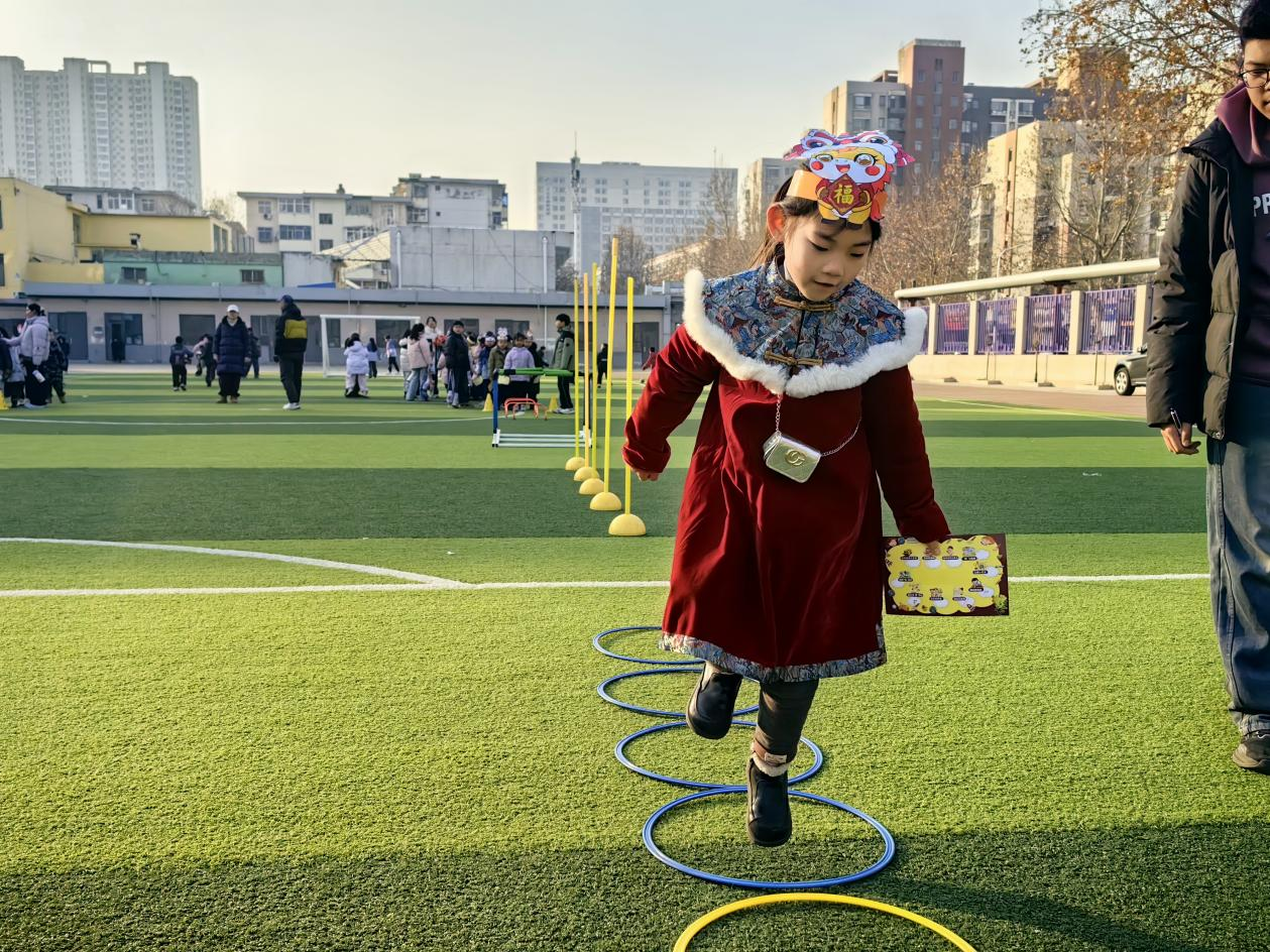 操场变身 “体能闯关营”,“萌马小勇士” 们在这里释放活力、锤炼本领。孩子们原地跳绳动作连贯、节奏稳定,随后衔接跑步与绕障动作一气呵成快速跑完 50 米、灵活绕障,全程笑声不断,童真活力感染着在场每一个人。老师们用 “星级” 与 “奖章” 评价孩子们的表现,让体育测评变成一场充满欢乐的运动嘉年华,既锻炼了体能,又培养了坚持到底的毅力。