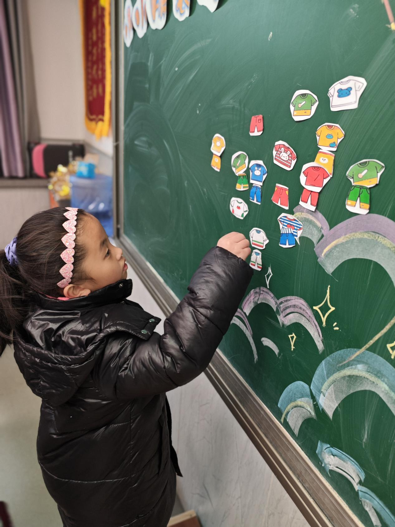 本次美术乐考设置了丰富有趣的创意环节,一年级“萌马小勇士” 们玩转手指纹添画,用指尖的奇妙印记解锁专属艺术密码;化身火眼金睛小侦探,在斑斓图案中开启数字寻宝之旅,发现藏于色彩里的数字奥秘;二年级小萌马们争当小小衣服搭配师,为童趣穿搭巧搭缤纷服饰,打造独属于童年的时尚造型;还能在趣味图画中寻找各类形状,用不同图形搭建属于自己的奇妙想象世界,在玩创中感受美术的乐趣,绽放童真创意。