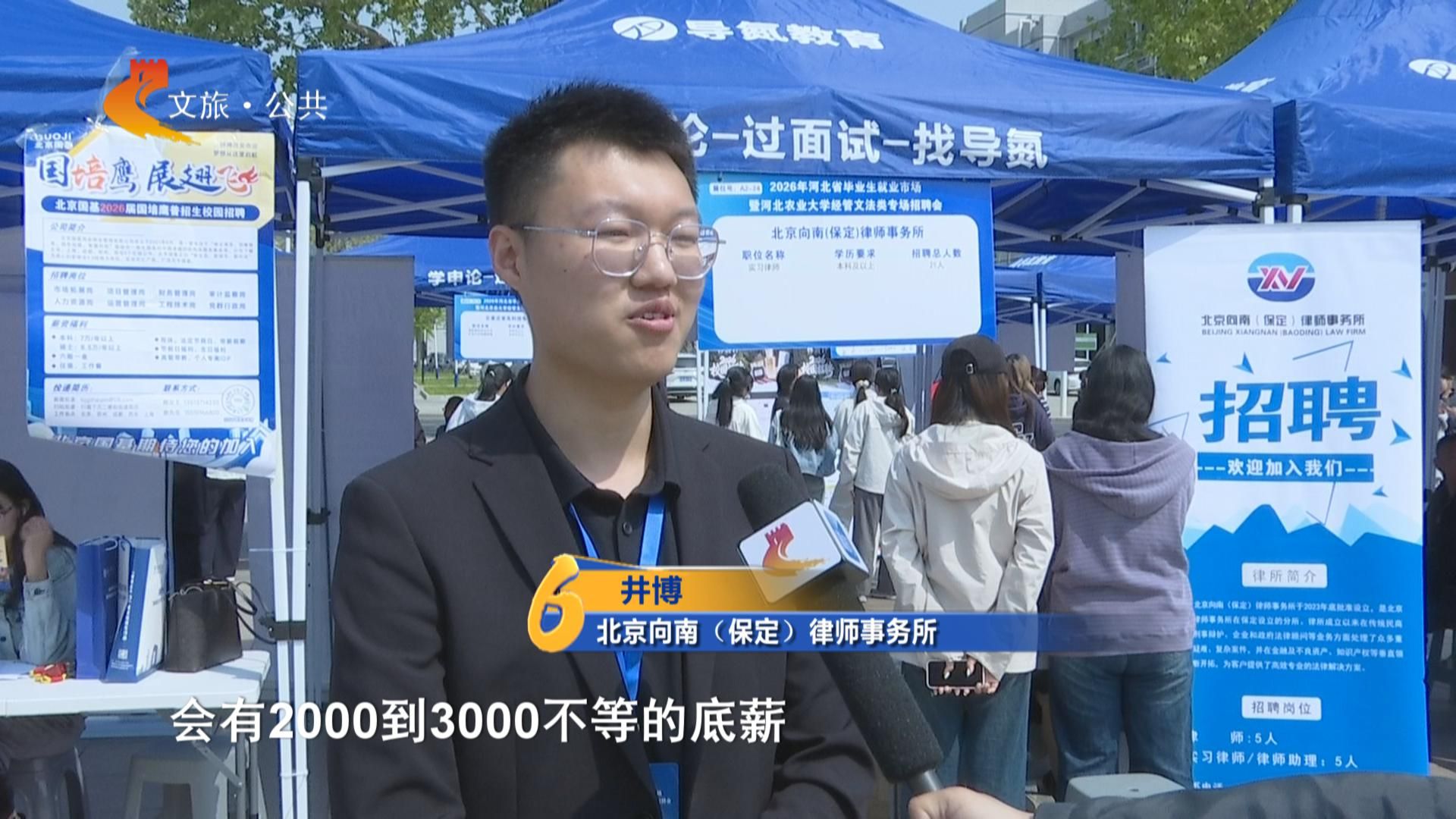 今天来到招聘会现场,希望找一份律所相关的工作。目前我已经向鲲游、还有广拓等几个律师事务所投了简历,也收到了几个面试邀请。
