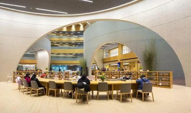 A馆:主馆,包含共享大厅、数字体验区、自助借阅区以及社会科学、文学等借阅区。