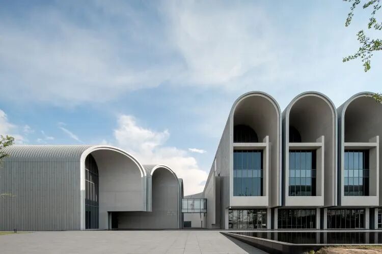 新馆由4个半圆形单体构成,大量运用“拱”形元素,是对赵州桥传统艺术的一次现代致敬,外观庄重大气,内部空间开阔。