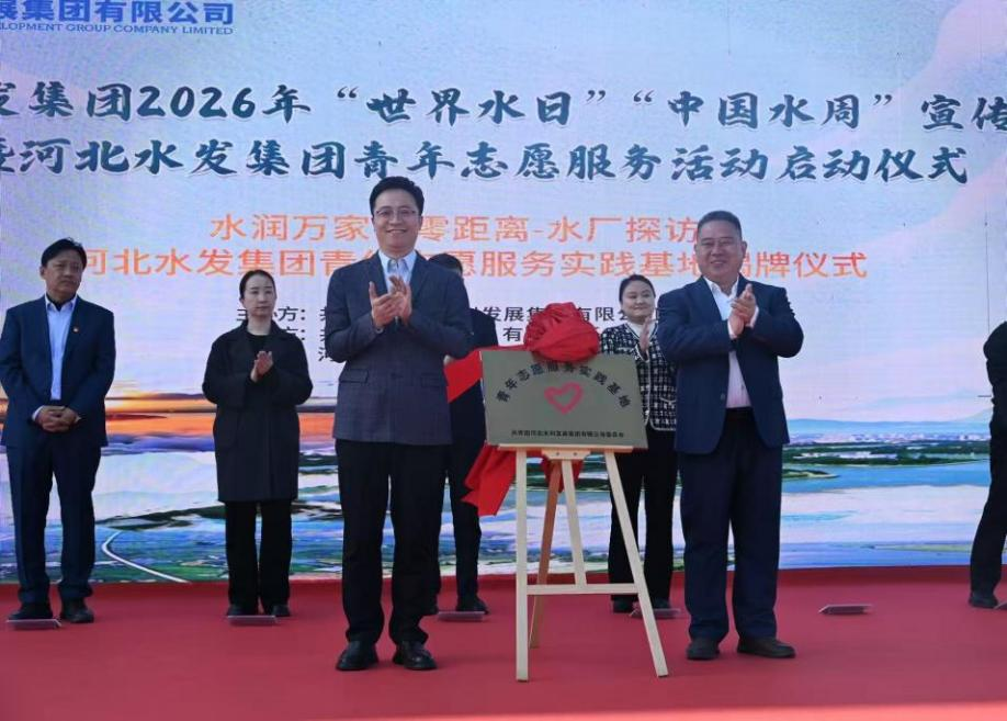 (河北水发集团团委书记赵海源、河北泓宁供水公司董事长马献峰为“青年志愿服务实践基地”揭牌)