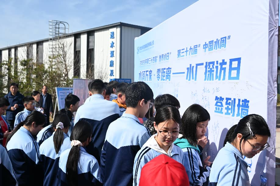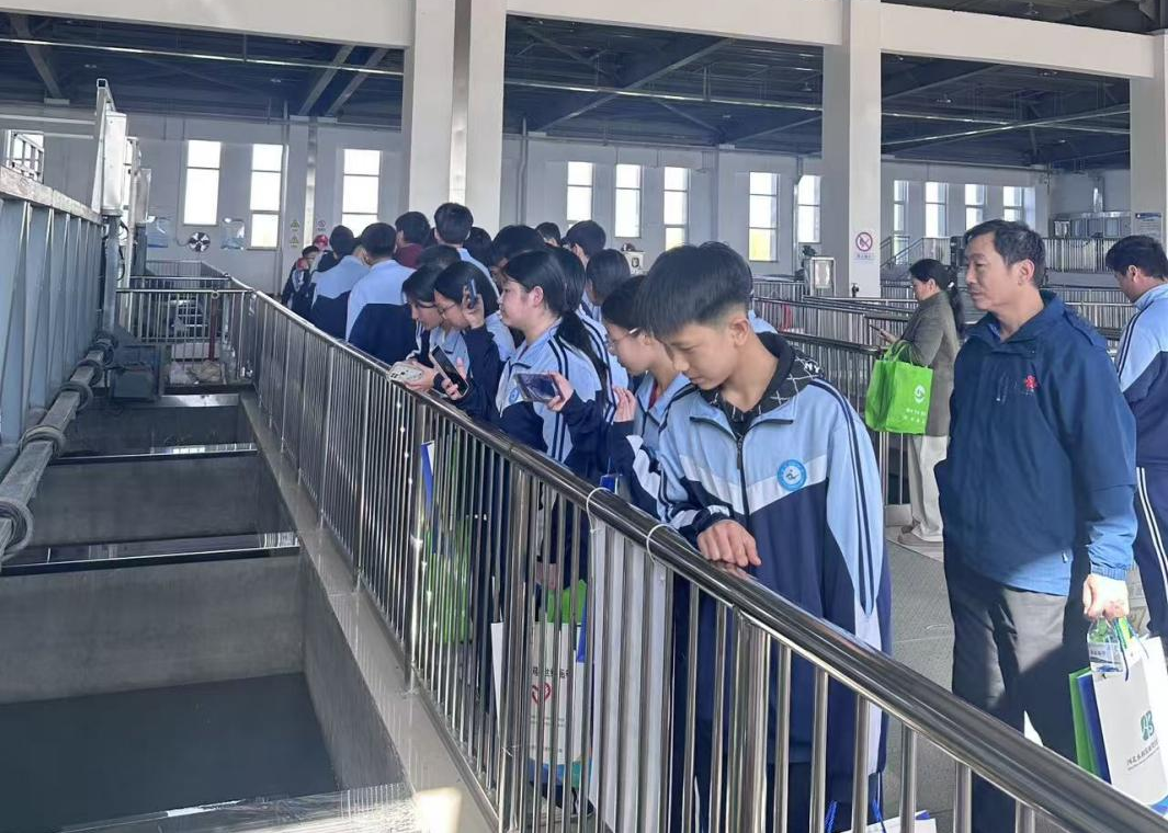 仪式后,与会人员一同走进水厂,开启探寻生命之源的科普之旅,以青春力量传递节水护水理念。当地群众代表在青年讲解员的引导下,分组探访混凝沉淀、V型滤池、臭氧活性炭和超滤膜车间、中控室、化验室等核心工艺节点,详细了解絮凝、沉淀、过滤、消毒等制水全流程。学生们踊跃提问,志愿者耐心解答,现场互动热烈。沿途,志愿者同步开展节水宣传,发放宣传手册、普及节水常识,将爱水护水理念深植人心。