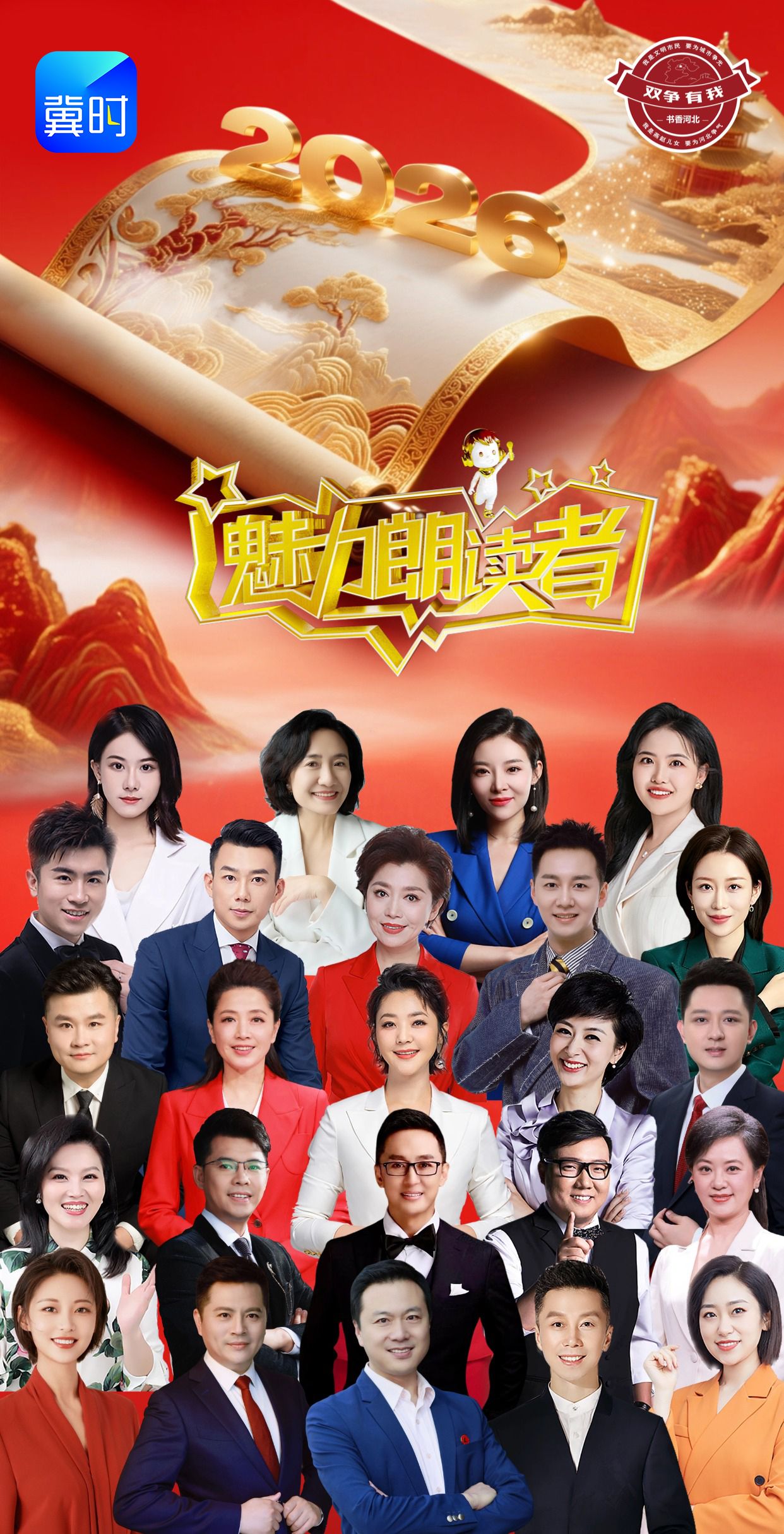 2026《魅力朗读者》迎新诵读“冀”系列节目热播正燃,紧扣【双争有我·书香河北】行动号召,每一期都以真情诵读传递文化力量,用赤诚之声浸润心灵成长,让燕赵文脉在朗朗书声中绵延,让书香气息漫溢冀原大地。