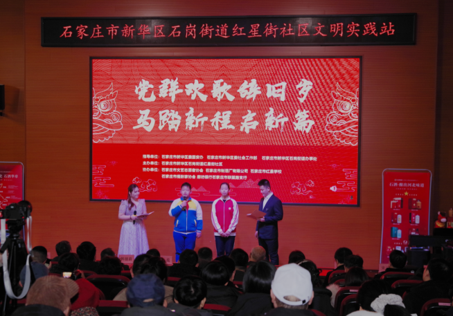 乙巳辞旧岁,丙午启新程。近日,石家庄市新华区石岗街道红星街社区辖区内的红星学校报告厅暖意融融、欢声如潮。一场由新华区委国安办、区委社会工作部悉心指导,红星街社区牵头主办,石家庄市文艺志愿者协会、石家庄市制酒厂有限公司、石家庄市红星学校等多家单位携手协办的迎新年党群大联欢活动在此温情启幕,为辖区居民送上满满的新年祝福与文化盛宴。