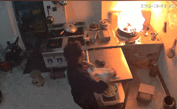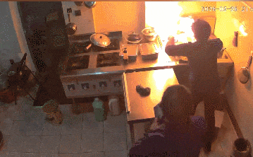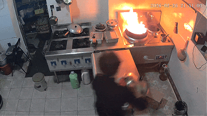 油锅内突然蹿起明火