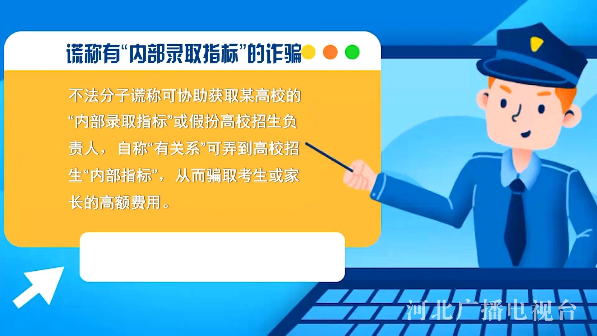 北京市公安局朝阳分局刑侦支队反诈民警 王佳:千万不要相信网络上面或者身边的一些所谓的朋友,告诉您承诺您,一定可以让您的孩子去上这个学校,那是不可能的,这个谁也办不到的。