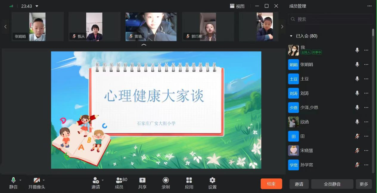 班主任老师与同学们在“云”端一起了解良好心理健康的标准,如何自我缓解压力、如何与同学友好相处以及如何保护自己等心理知识。