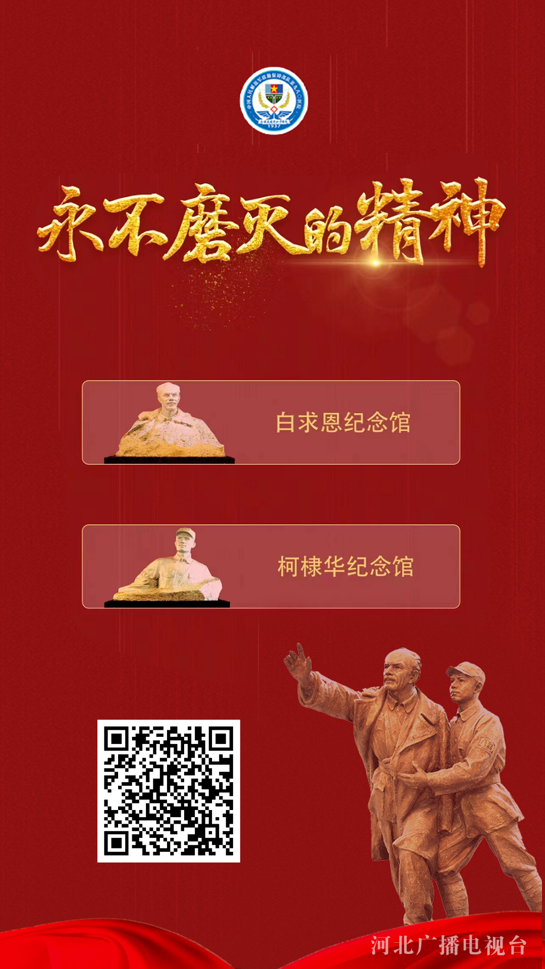 冀时客户端报道(河北台 刘肇翔 通讯员 聂慧梅 张彬楠 邵辉)12月21日是毛泽东同志《纪念白求恩》一文发表84周年。为赓续红色血脉,弘扬传承白求恩精神,白求恩国际和平医院“白求恩、柯棣华云纪念馆”正式上线。游客可扫描下图二维码参观浏览。