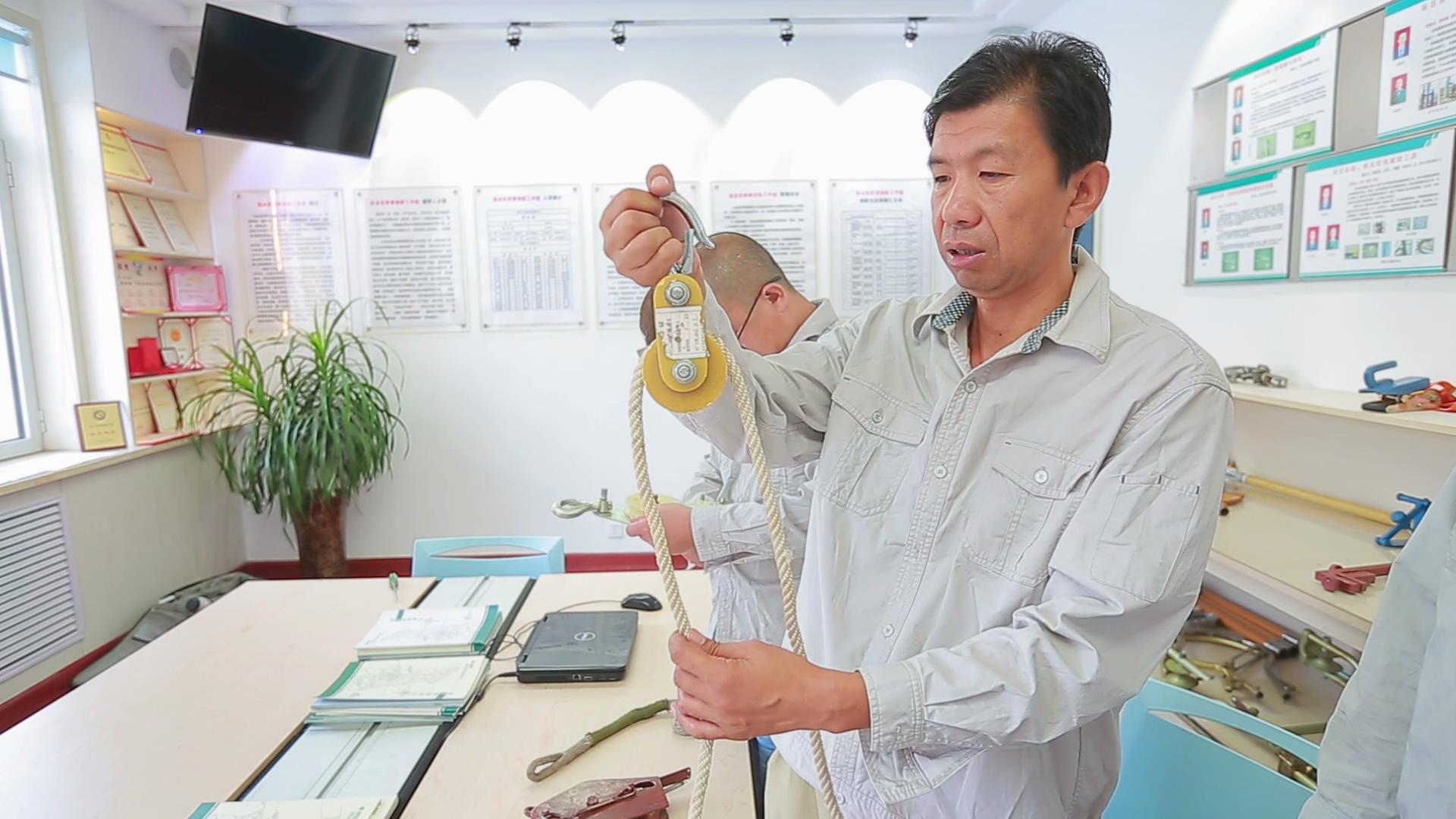 “总这么干活可不行,必须得想办法解决。”从那以后,高会民便冥思苦想解决方案,一遍一遍画图、一遍遍制作模型、一遍遍地试验。经过一年多的探索,终于,高会民和工友们研制出了高压带电作业修补导线滑动平梯。检修人员坐在平梯上作业,大幅缩短了工作时间,也多了一道安全保障。