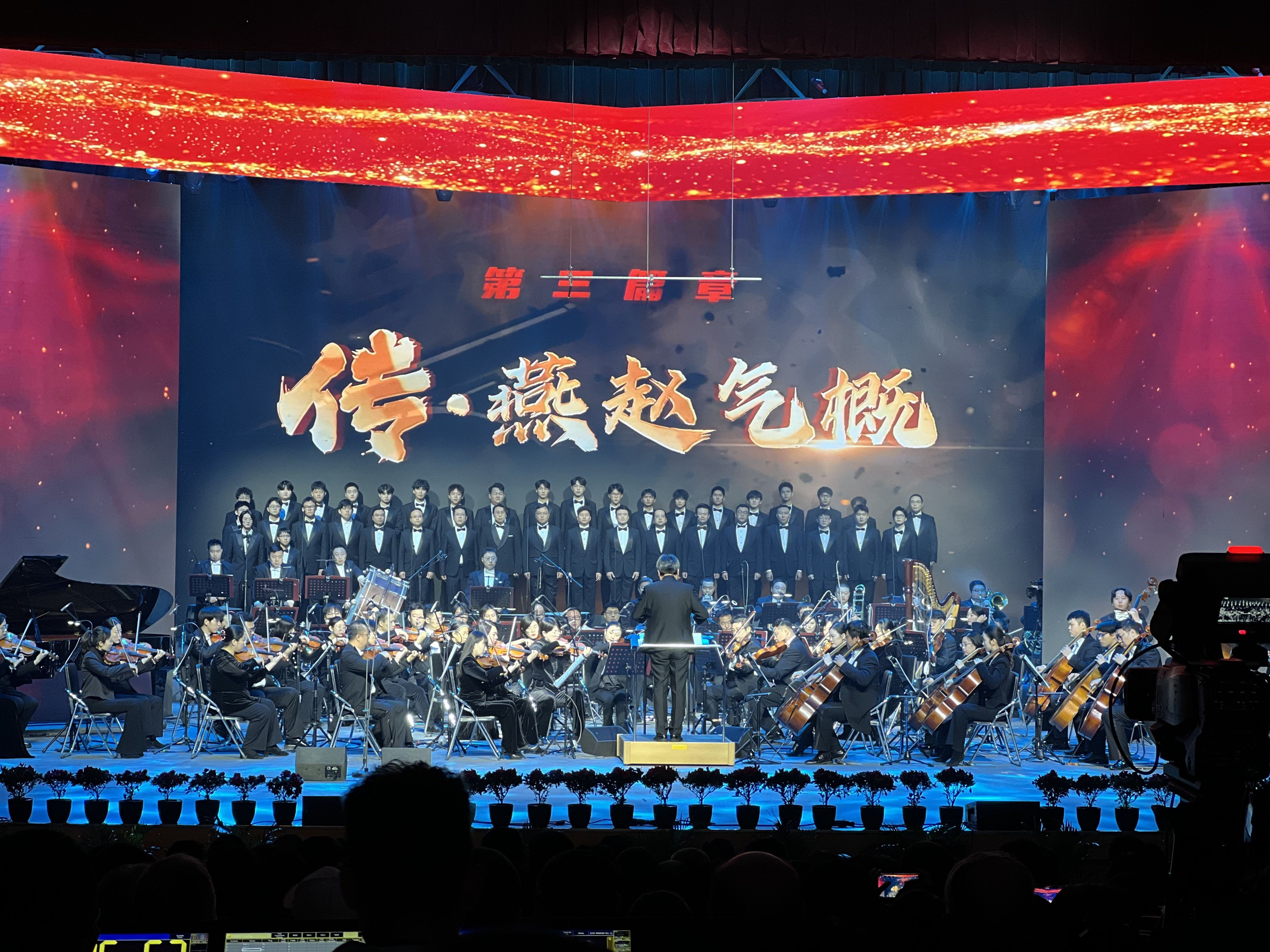 灯光渐暗,大屏字幕“戎·热血记忆”熠熠亮起。悠扬乐声中,朗诵者登台,《不屈的燕赵儿女》的声浪回荡全场,同步播放的抗战英雄谱,将观众瞬间拉回那个英雄辈出的峥嵘年代。