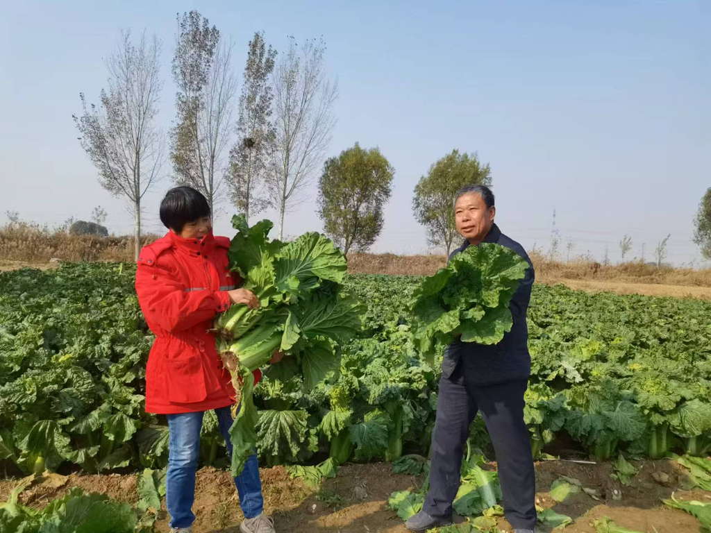 柳瑞成帮助村民收白菜。