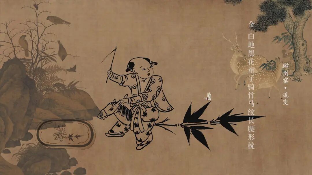 元代昭君出塞瓷枕上,旌旗飘扬,骏马嘶鸣,方寸之间,绘尽家国情怀与丝路交融;为游牧生活打造的四系瓶,适配马背上的岁月,藏着文明碰撞的印记;还有那些刻绘着福纹、牡丹纹、婴戏纹的瓷器,将“一马当先”“岁岁安康”“阖家美满”的期许,凝于一刀一刻,融于一纹一画。