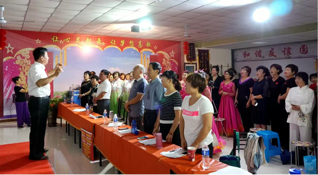 种茂庭在老年大学带领学员们唱红歌。