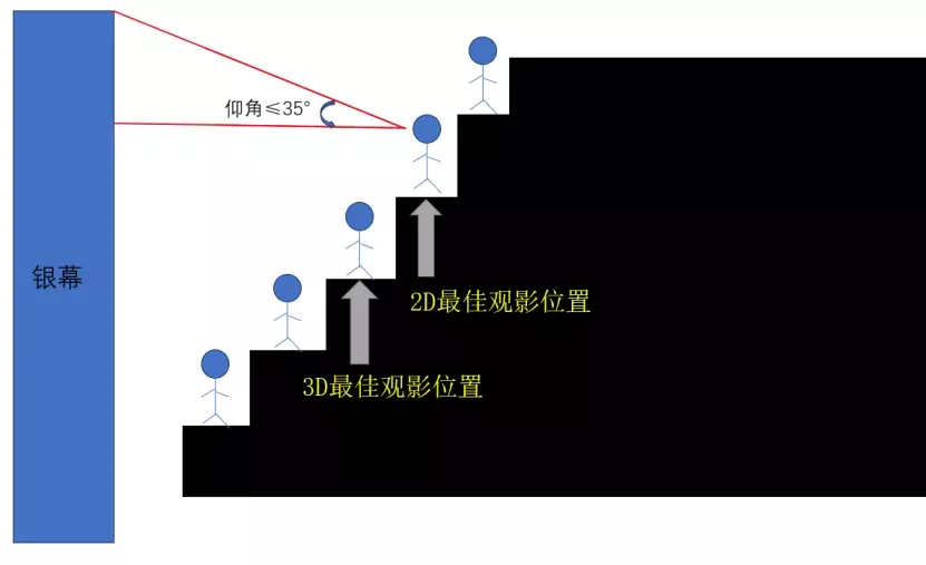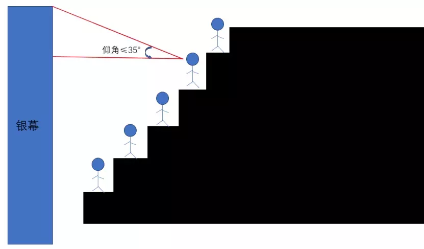 其次,为了避免造成颈椎疲劳,观众与银幕水平线之间的仰角不宜超过35°。