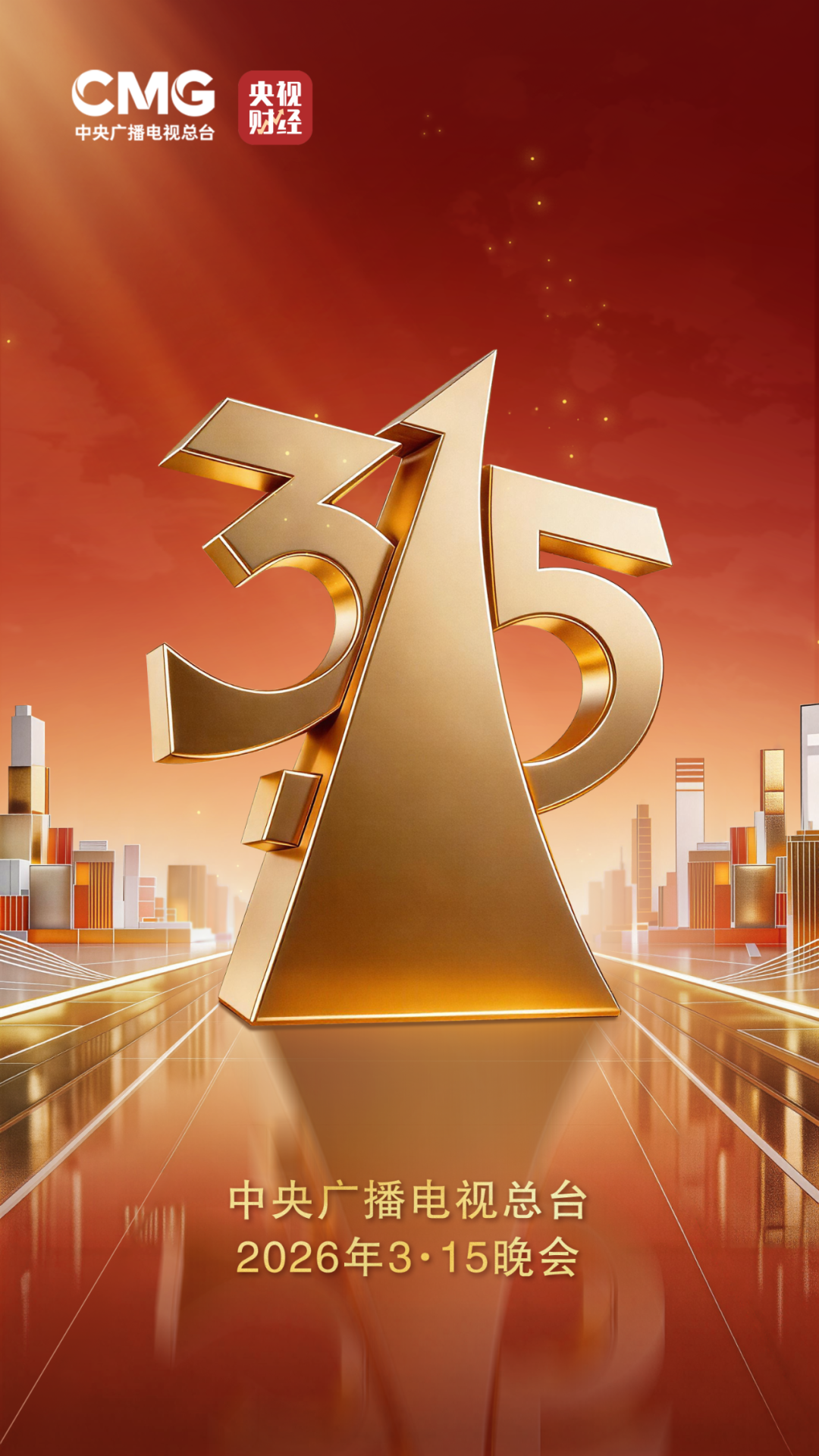 中央广播电视总台2026年“3·15”晚会将于3月15日20点在央视财经频道现场直播。央视财经、央视频、央视网和经济之声将同步播出。