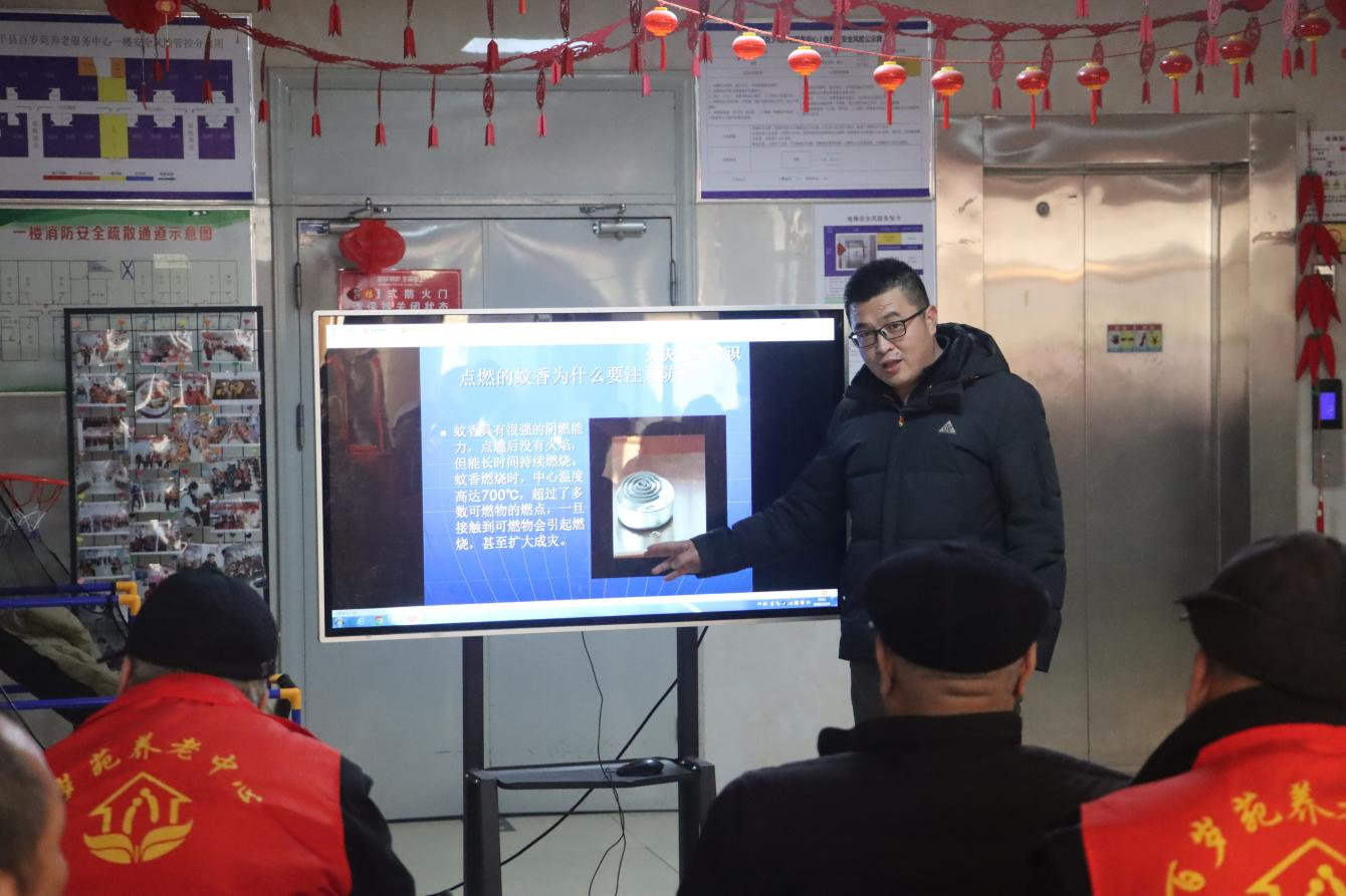 在安全专题讲座中,工作人员结合敬老院生活实际,围绕用电安全、消防安全、防跌倒及应急自救等关键问题,为老人们讲解了一系列实用易懂的安全知识,增强了大家的安全意识和自我保护能力。