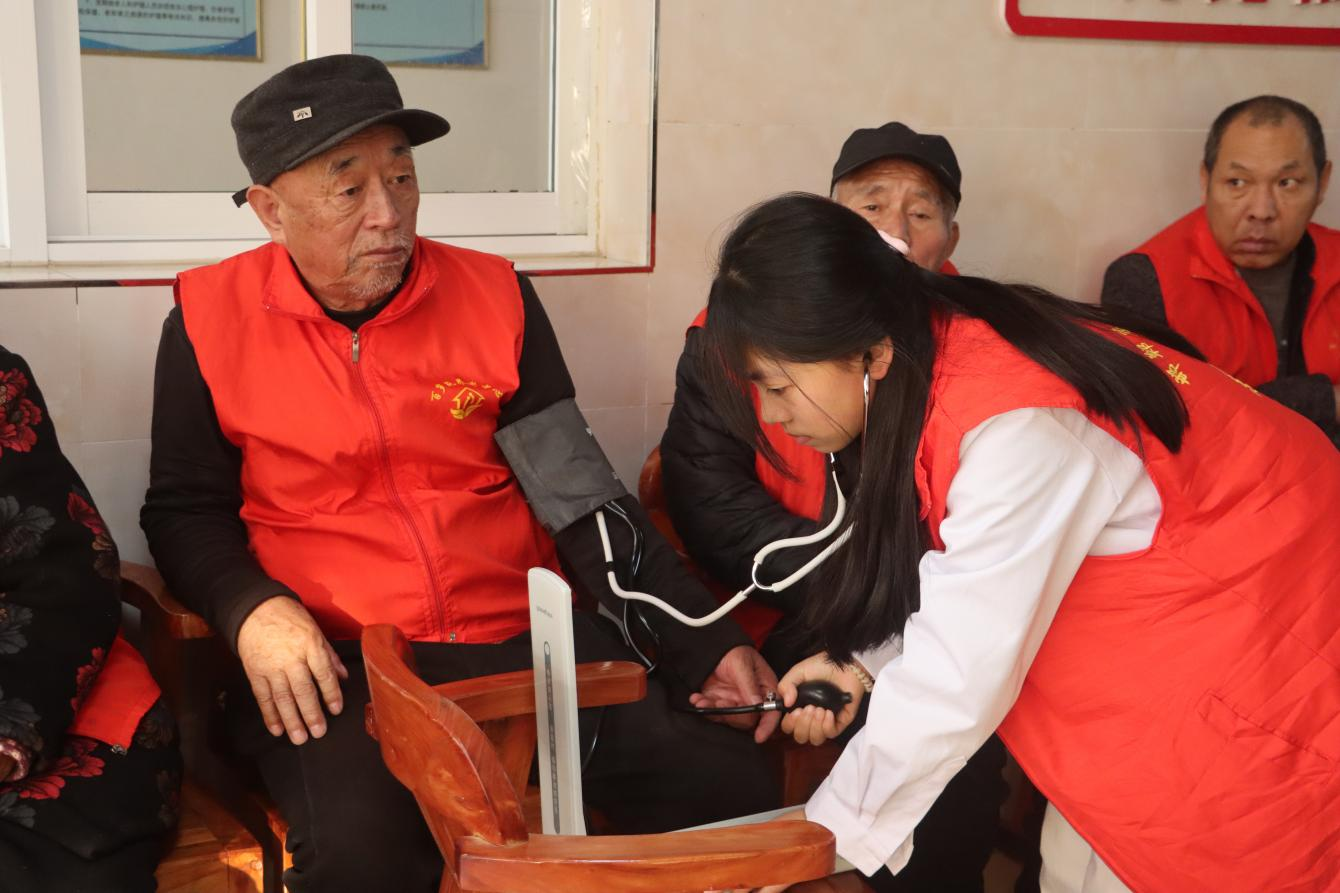 讲座结束后,随行的学生志愿者发挥专业特长,为老人们提供了简单的爱心义诊服务,测量血压、询问健康状况,并给予基础的健康指导。