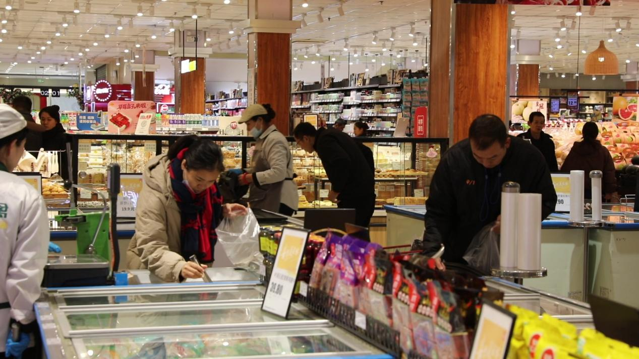 元旦临近,邯郸市成安县的节日消费市场暖意融融、购销两旺。在当地美食林超市,琳琅满目的商品整齐陈列,实惠亲民的价格让市民选购热情高涨,满满的购物车承载着浓浓的节日期盼,也彰显着市场的蓬勃活力与烟火气息。