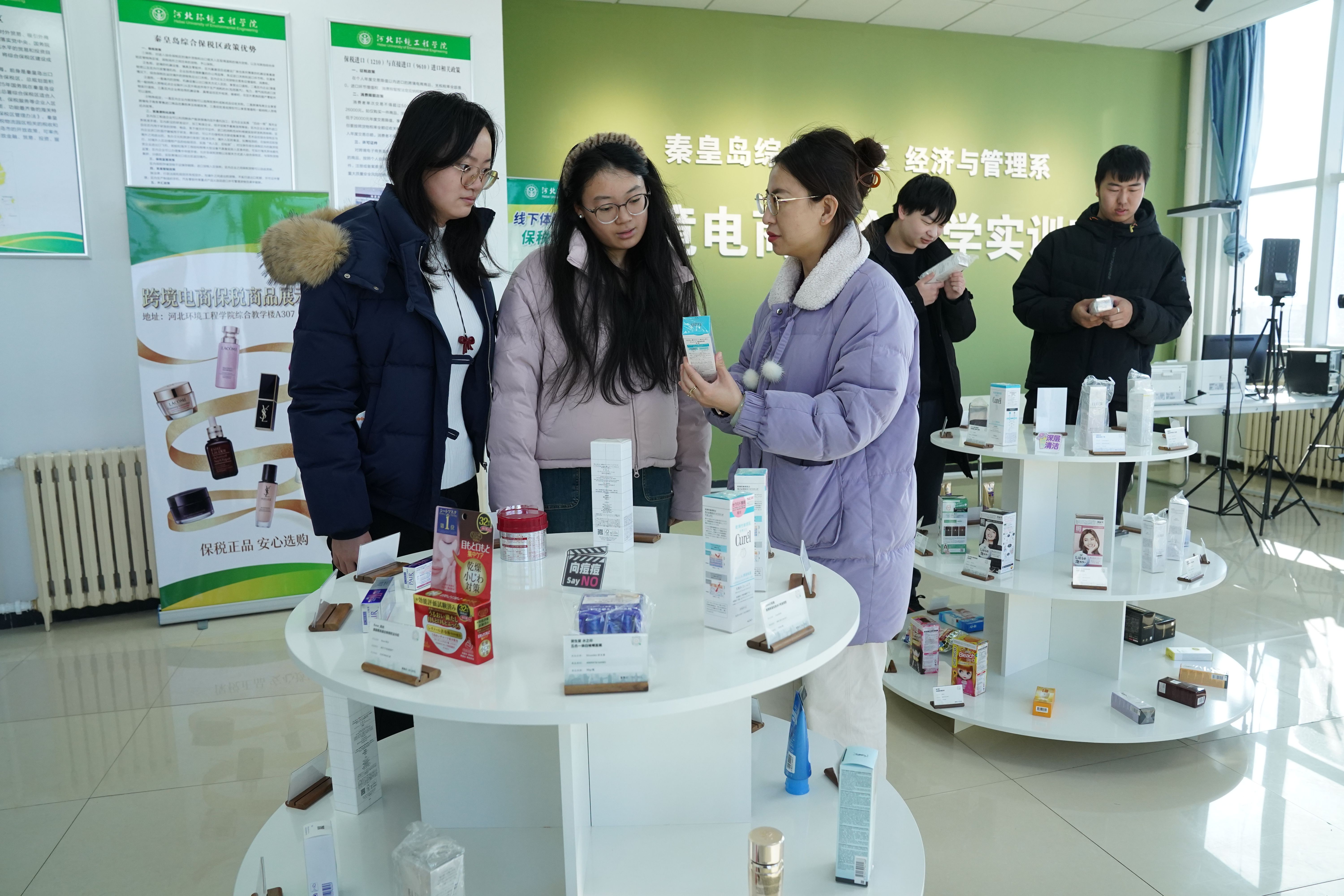 为推动创新跨境电商新业态,秦皇岛综合保税区管委联合北戴河海关及天津百特公司、秦开综保公司等企业,在河北环境工程学院开展联合教学,在该校经济与管理系建设联合教学实训点和教学体验店,创新实践 “线下体验 + 线上下单” 模式。教学体验店聚焦大学生消费需求,涵盖进口咖啡、美妆彩妆、电器等多品类商品,既为学生提供 “看得见、摸得着” 的消费场景,也为海关监管创新提供试验田。