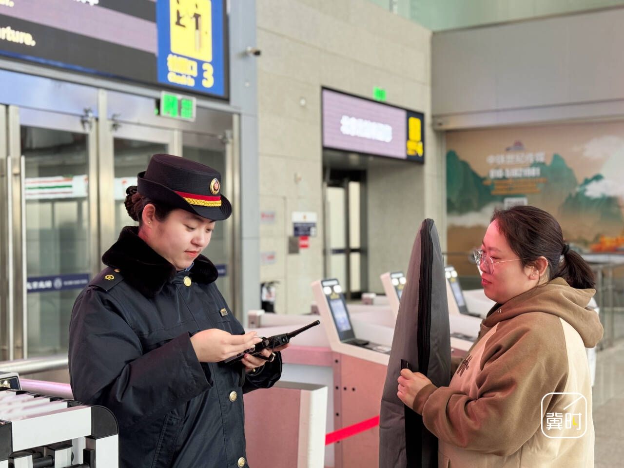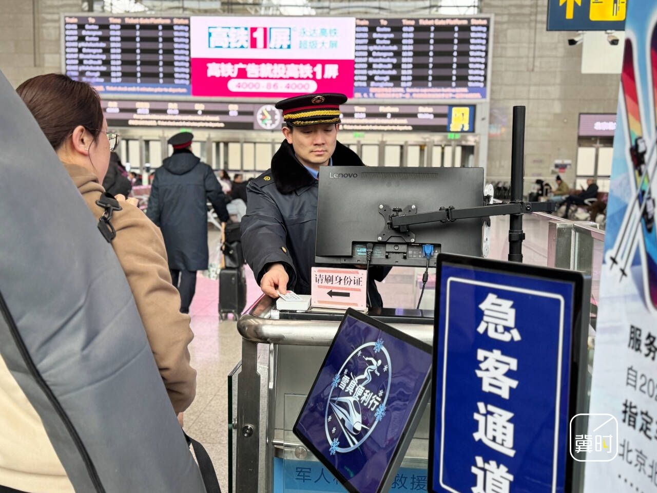 为保障扩大试点后的服务顺畅衔接,北京北站提前优化服务措施:在进站口摆放雪具便利行服务宣传易拉宝,清晰列出服务范围、预约流程、收费标准等关键信息,方便旅客快速获取;在安检通道及人工验票进站通道均放置醒目标识,引导旅客有序通行。旅客成功购买“雪具便利行”服务后,可经人工通道核验订单,待工作人员确认雪具包装符合要求并将张贴专用核验标识后,即可便捷进站。车站还将加强现场指引,及时解答旅客问询,保障全流程服务高效顺畅。