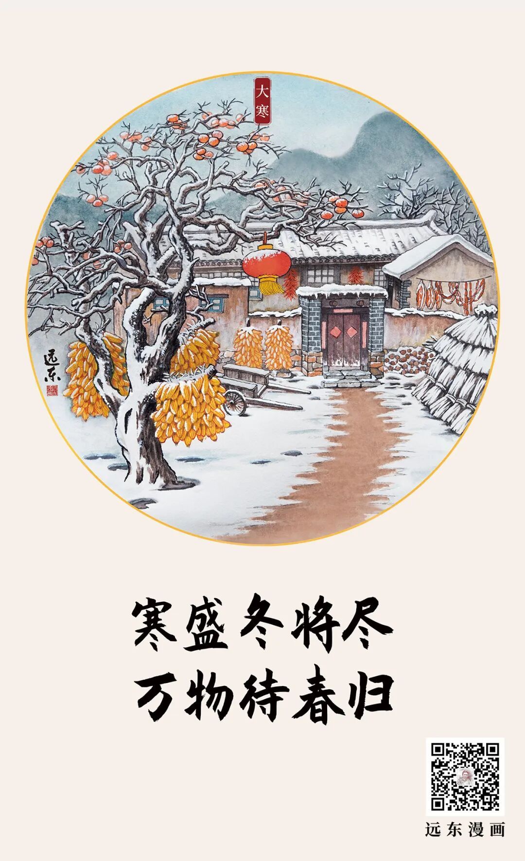 大寒,是二十四节气的最后一个节气,它同小寒一样,都是表示天气寒冷的程度,“寒气之逆极,故谓大寒”,到了大寒也就进入了“四九”,是我国大部分地区一年中最冷的时候。风大,低温,地面积雪不化,呈现出冰天雪地、天寒地冻的严寒景象。