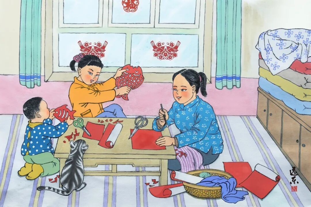 贴年红是迎年的重要习俗之一,年红包括春联、窗花、福字等红色装饰品。在大寒节气至春节期间,过去家家户户都会剪窗花、贴对联,用各种年红装饰来增添家里过年的喜庆氛围。贴年红不仅是一项家庭迎年活动,更是一种文化传承和精神寄托,表达了人们对新年的美好期盼和祝福。