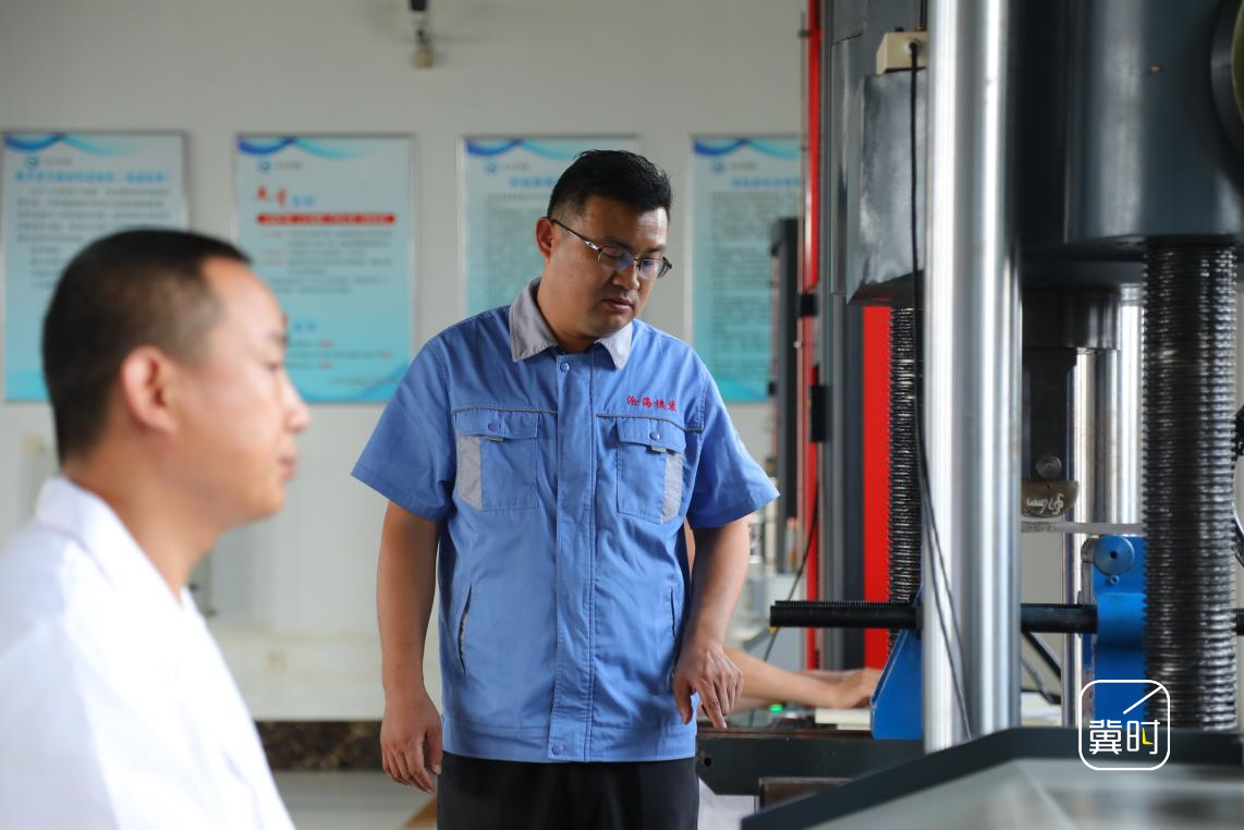 省人大代表王鹏飞在实验室审定力学性能实验过程