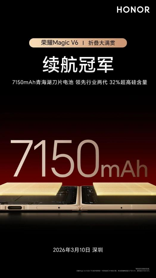 荣耀Magic V6:主打轻薄和长续航