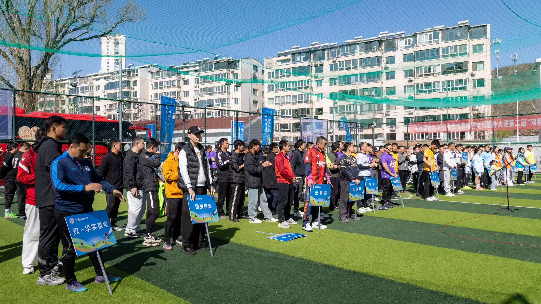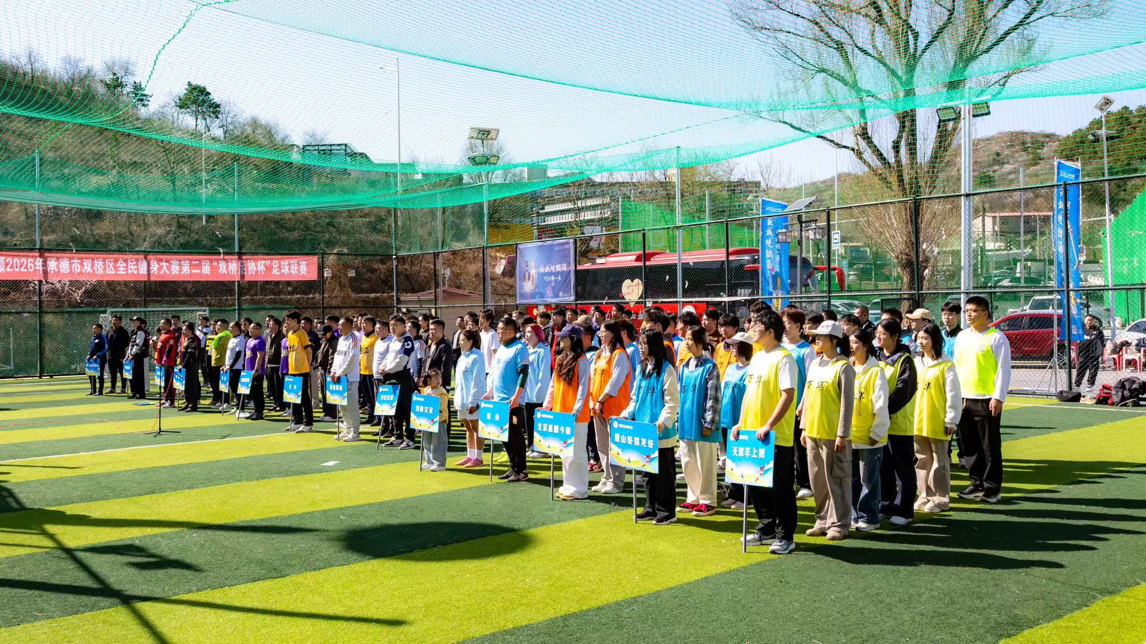 4月11日上午,2026年承德市双桥区全民健身大赛第二届“双桥足协杯”足球联赛在虹云运动中心开赛。赛事由承德市双桥区教体局主办,汇聚多方力量、辐射京津冀地区,共吸引全市各县(市、区)、企事业单位、社会团体参赛,同时特邀北京、天津、唐山三地精英球队助阵,总计15支代表队、300余名运动员齐聚绿茵赛场。