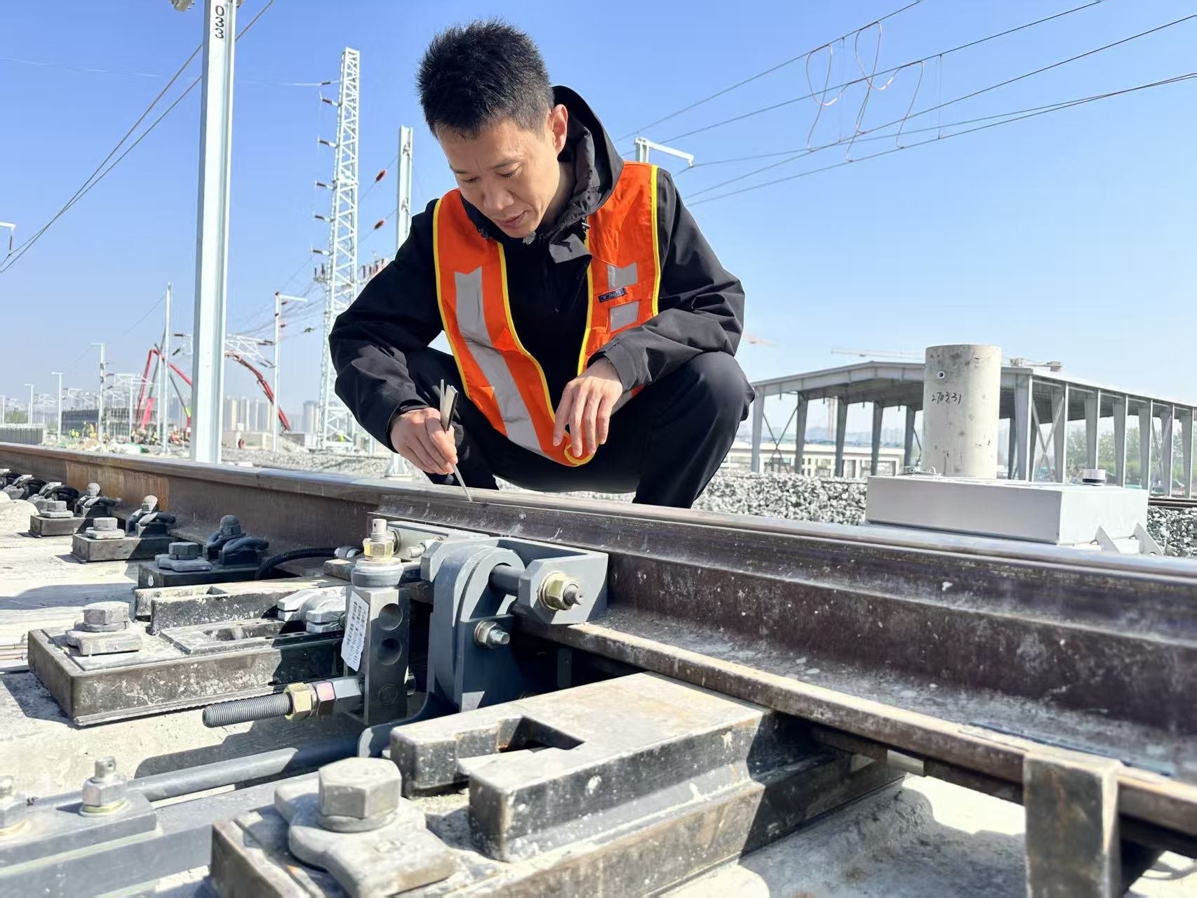4月15日,京港高铁雄商段河北段联调联试拉开帷幕,清晨的施工现场薄雾轻笼,晨光铺洒在笔直的无砟轨道上。一抹明黄色工装身影在钢轨间俯身检视、细致核验,动作沉稳精准。他就是国铁北京局衡水工务段任丘西高铁线路车间副主任田占兴,这位1990年出生的青年党员,以“毫米级”的极致坚守,全力推进京港高铁雄商段河北段提前介入工作,用匠心守护线路安全。
