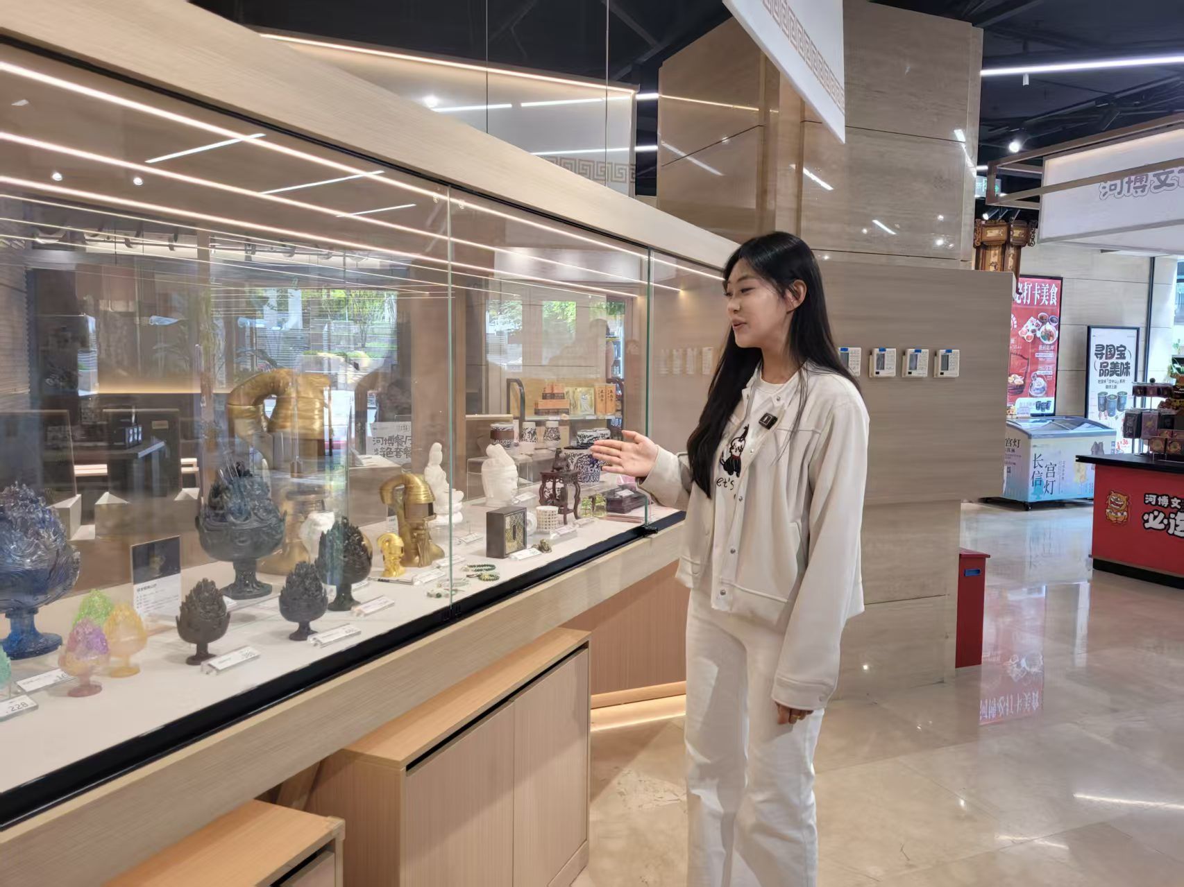 如果说文物是凝固的历史,那么文创产品则让这份历史悄然融入日常生活。在河北博物院的文创空间,记者看到,长信宫灯化身为一款会发光的冰箱贴——轻轻一点,宫女手中的灯盏便亮起暖黄色的光。展台上还摆着宫灯造型的小夜灯、温饼、桌摆、捏捏乐等文创产品,几位年轻游客正围在一起挑选。河北博物院艺术设计部工作人员李可心说:“围绕我们的明星产品长信宫灯,我们开发了百余种文创产品。我手中拿的是一件文物复仿类产品,创作过程中保留了长信宫灯可以拆卸和组装的特点,观众可以实际去体验拆卸,感受工匠的环保理念和匠心精神。”