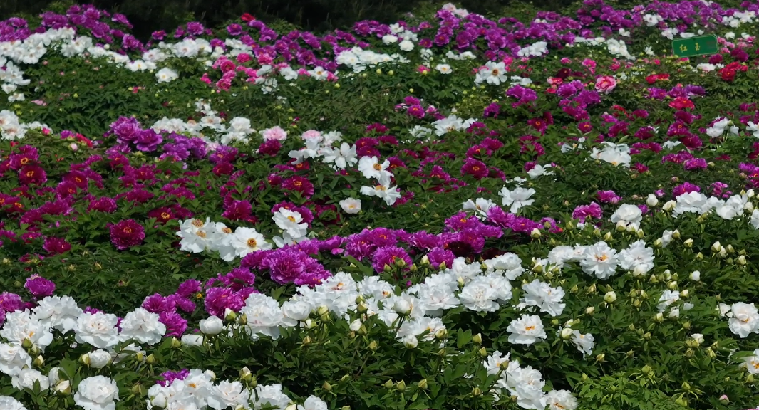 在邯郸市峰峰矿区义井镇牡丹园内,30余万株牡丹花竞相绽放。在涵盖了九大色系、十大花型的精品牡丹观赏区,赵粉、海黄、花王、擎天粉等百余个品种的牡丹花,红似烈焰,粉若云霞,白如瑞雪,多种颜色交织在一起,犹如五彩云锦。游人们穿梭在花海中,打卡留影,沉醉其中。游客张娅妮说:“我从网上看到这里的牡丹花,到这儿以后,感觉这里的(牡丹)花特别好看,种类也挺多的,非常出片!”