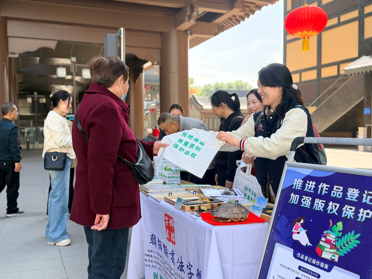4月26日是“世界知识产权日”,为进一步强化版权保护宣传引导,厚植尊重原创、保护版权、鼓励创新的社会氛围,4月22日,邯郸市委宣传部联合邯郸丛台区委宣传部、邯郸市版权服务站等单位,在邯郸道历史文化街区开展版权保护集中宣传服务活动。