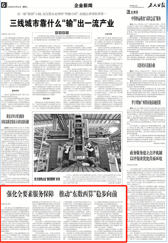今天(5月30日),《工人日报》刊发新闻《强化全要素服务保障 推动“东数西算”稳步向前》。