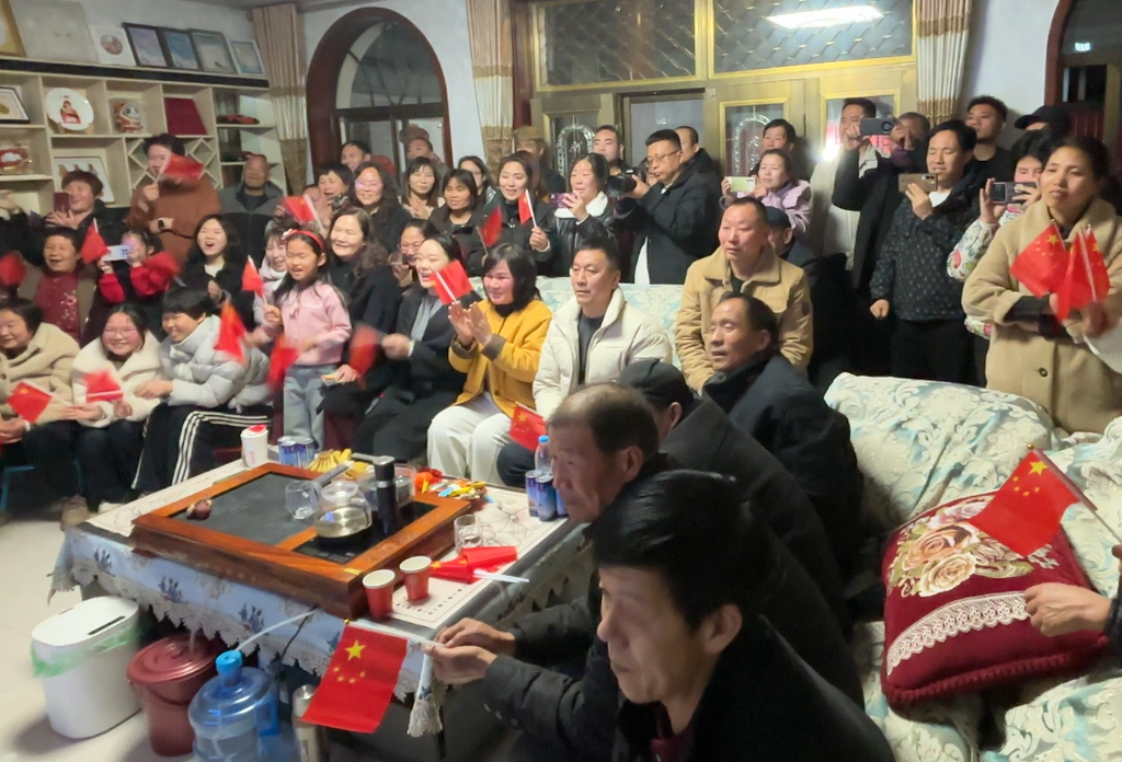纪立家的家人在石家庄深泽老家观看比赛。毛艺博、王慧芳摄