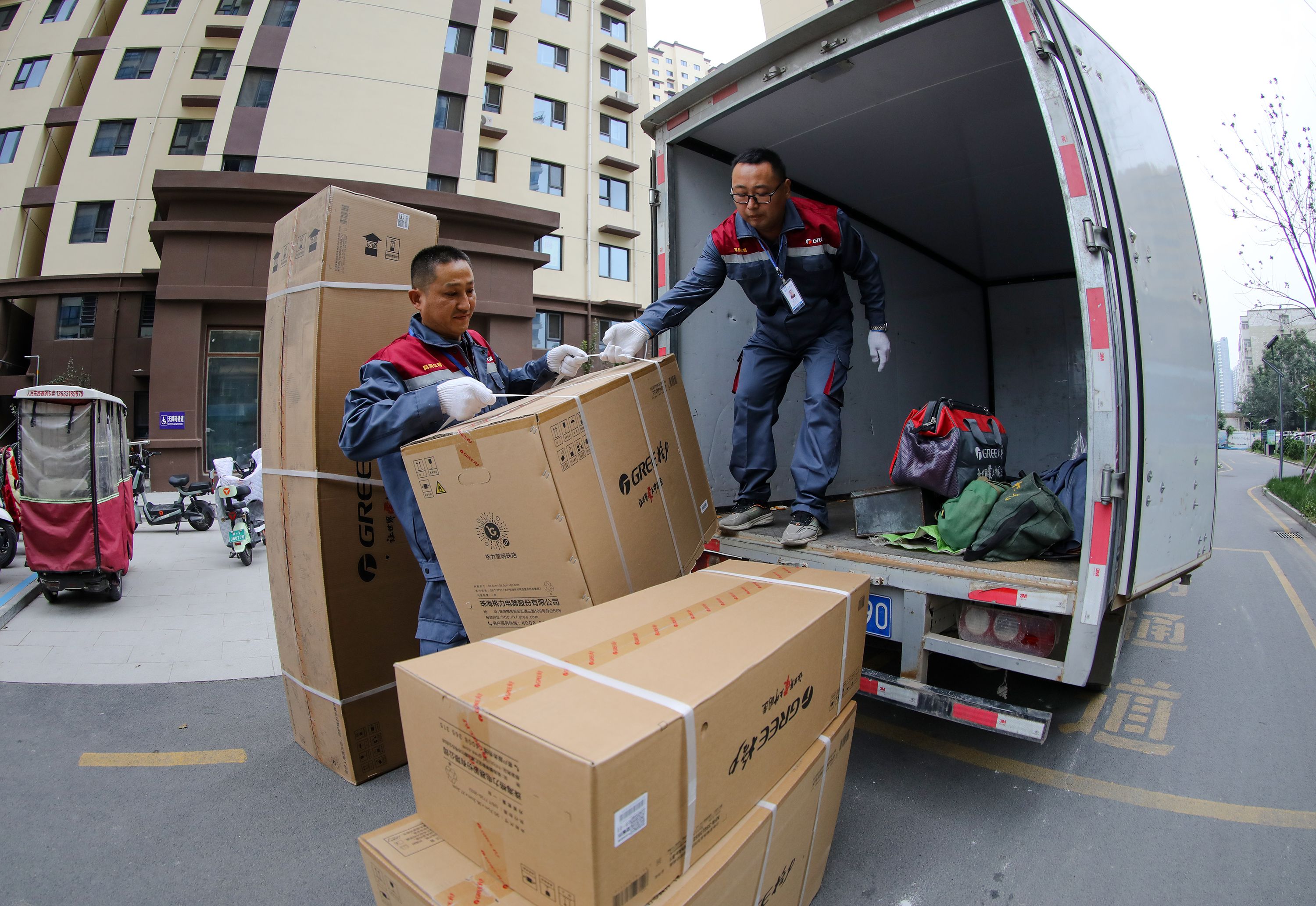 2025年衡水科润电器有限责任公司工作人员为顾客送货到家。陈康摄