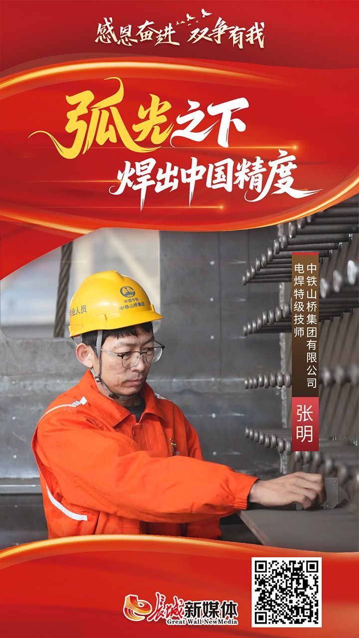2007年,张明技校毕业来到中铁山桥成为一名电焊工。19年来,弧光的轨迹划过港珠澳大桥见证世纪工程;划过美国韦拉扎诺海峡大桥定义中国焊接标准;划过北盘江大桥征服世界著名天堑;划过孟加拉国帕德玛大桥承载“一带一路”友谊。这支焊枪,已在二十多个国内外重点工程上,以毫厘不差的精准,为中国制造的精度标注下鲜明的注脚。