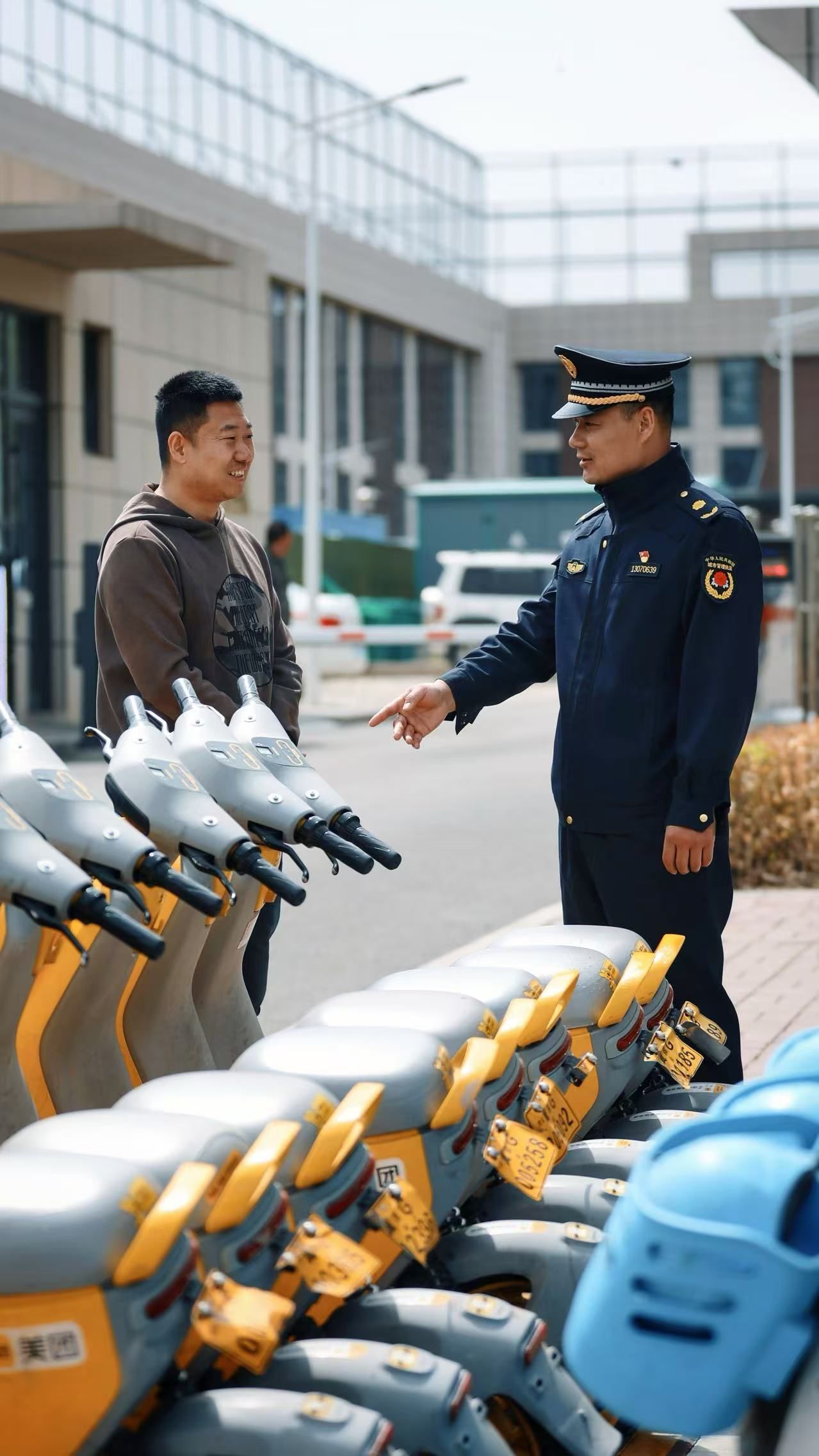在河北北方学院附属第一医院门口,共享单车整齐停放在蓝色标线区内。哈啰单车运维员小李正和城管队员巡查,将个别不规范车辆归位:“我们与城管建联动群,车辆淤积、乱停信息马上共享,处置效率大大提高。”