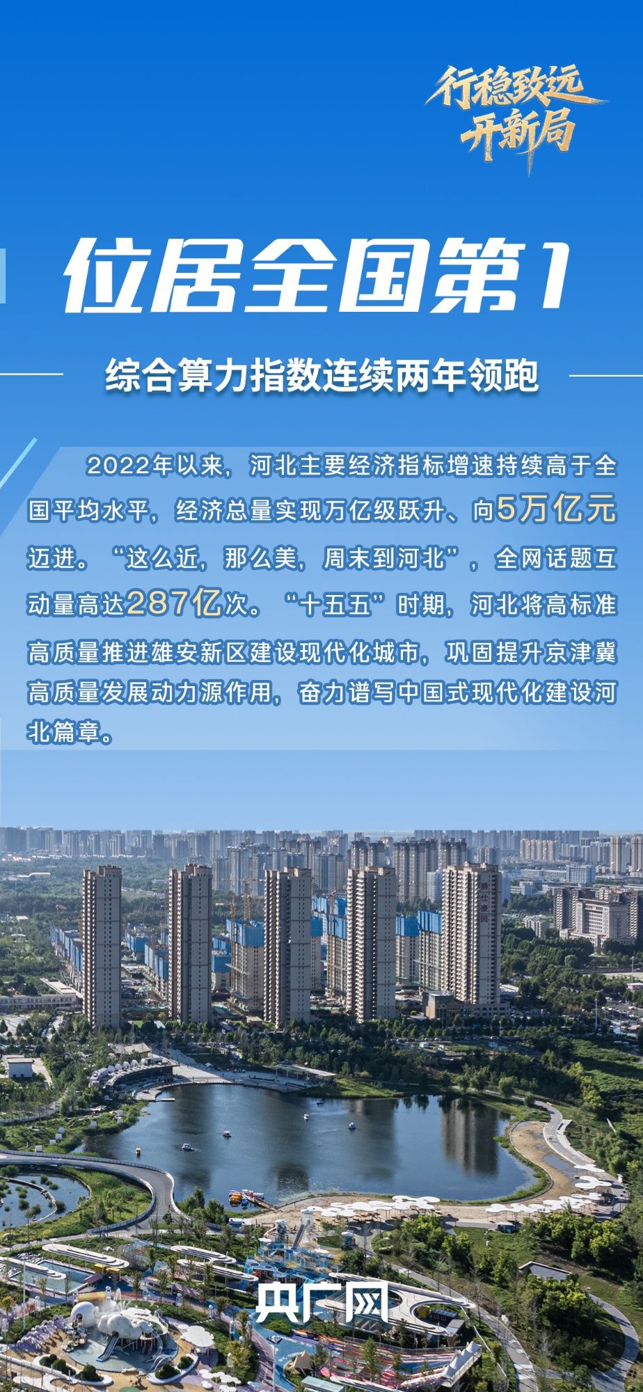 古城新韵,这是“十四五”期间河北文旅高质量发展的生动写照。从一句标语打造的文旅新风尚,到一卷蓝图构建的开放新格局,再到一汪碧水绘就的绿色新画卷,河北省经济转型、高质量发展向上突围展现亮眼成绩:综合算力指数全国第一、抽水蓄能规划建设规模全国第一、钢铁环保A级企业数量全国第一,经济总量向5万亿元迈进。