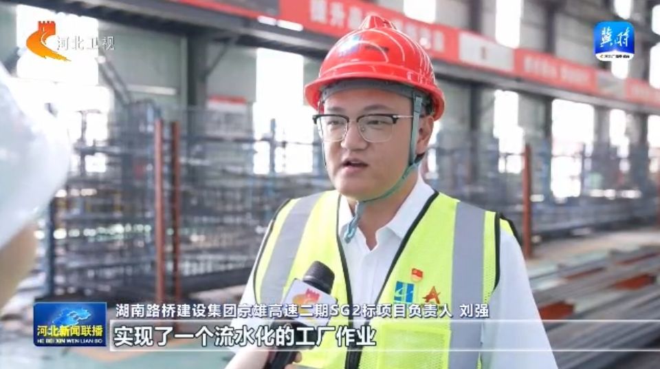 京雄高速二期项目全线桥梁占比近七成,为保证施工进度,项目团队打造了一条智慧梁板生产线,能够实现钢筋制作、混凝土浇筑等工序的集成化管控,制梁效率较传统模式提高一倍以上。