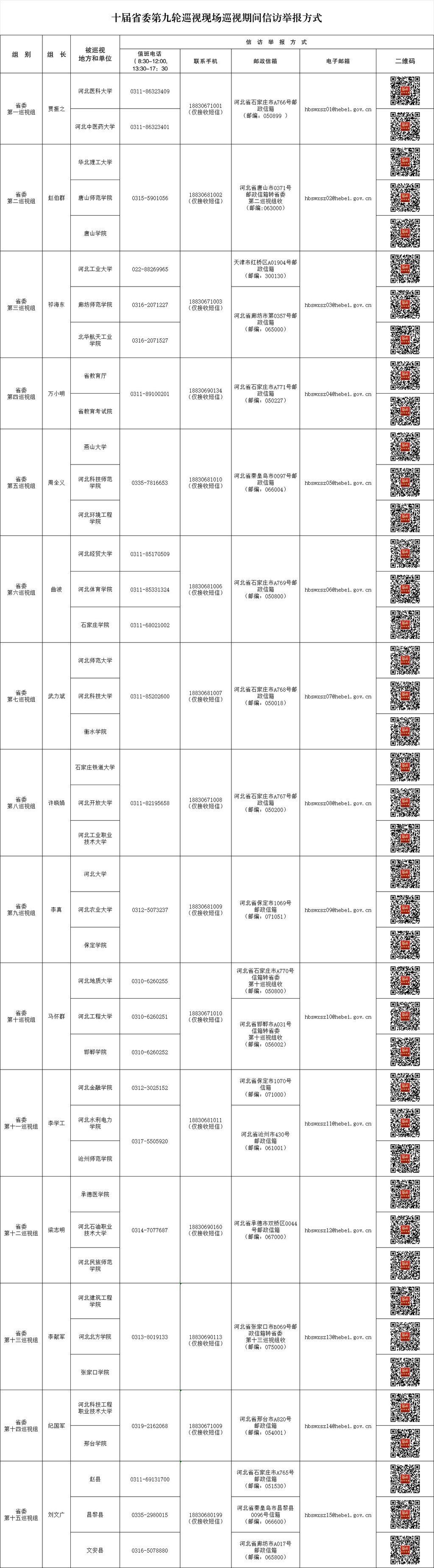 十届河北省委第九轮巡视现场巡视期间信访举报方式公布
