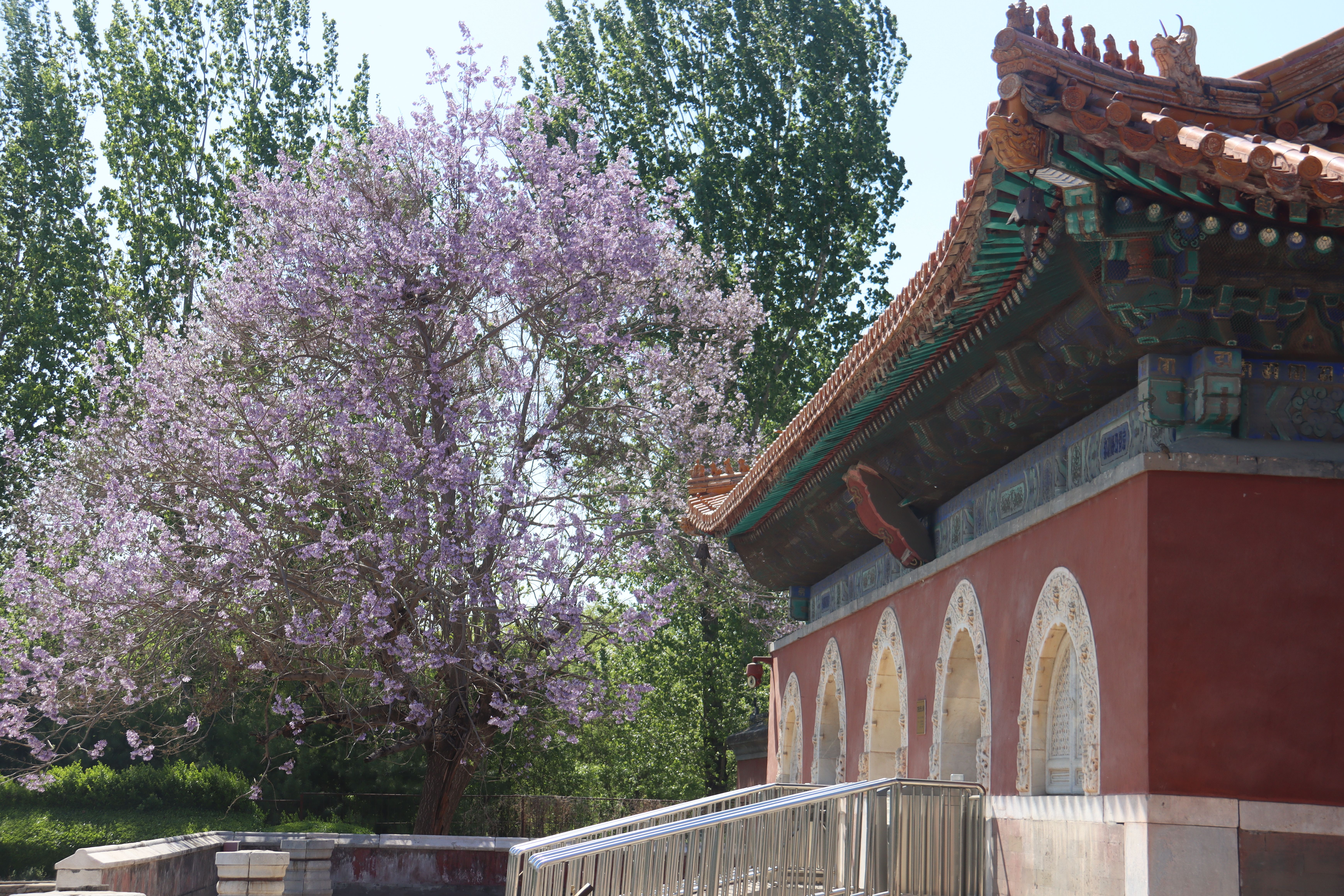 冀时客户端报道(拍客 张建民)近日,易县清西陵景区永福寺的梧桐树,正值开花期,淡淡的花香中夹杂着的丝丝香甜味道,沁人心脾。抬头望去,只见它白中带粉,粉中带紫,一团团,一簇簇,引得蝴蝶在花丛中翩翩起舞,把古香古色的寺庙装扮的更加美丽。